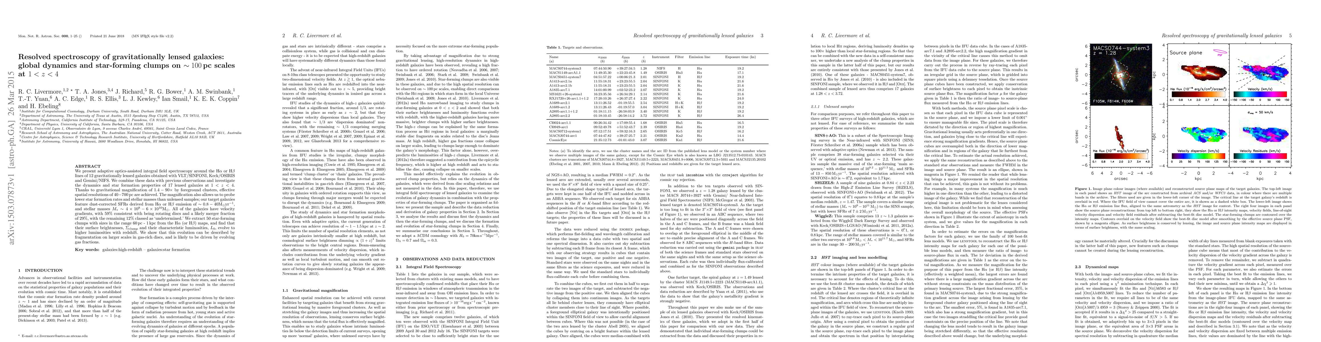 We present adaptive optics-assisted integral field spectroscopy around the Ha or Hb lines of 12 gravitationally lensed galaxies obtained with VLT/SINFONI, Keck/OSIRIS and Gemini/NIFS. We combine these data with previous observations and investigate the dynamics and star formation properties of 17 lensed galaxies at z = 1-4. Thanks to gravitational magnification of 1.4 - 90x by foreground clusters, effective spatial resolutions of 40 - 700 pc are achieved. The magnification also allows us to probe lower star formation rates and stellar masses than unlensed samples; our target galaxies feature dust-corrected SFRs derived from Ha or Hb emission of 0.8 - 40Msol/yr, and stellar masses M* ~ 4e8 - 6e10 Msol. All of the galaxies have velocity gradients, with 59% consistent with being rotating discs and a likely merger fraction of 29%, with the remaining 12% classed as 'undetermined.' We extract 50 star-forming clumps with sizes in the range 60pc - 1kpc from the Ha (or Hb) maps, and find that their surface brightnesses and their characteristic luminosities evolve to higher luminosities with redshift. We show that this evolution can be described by fragmentation on larger scales in gas-rich discs, and is likely to be driven by evolving gas fractions.