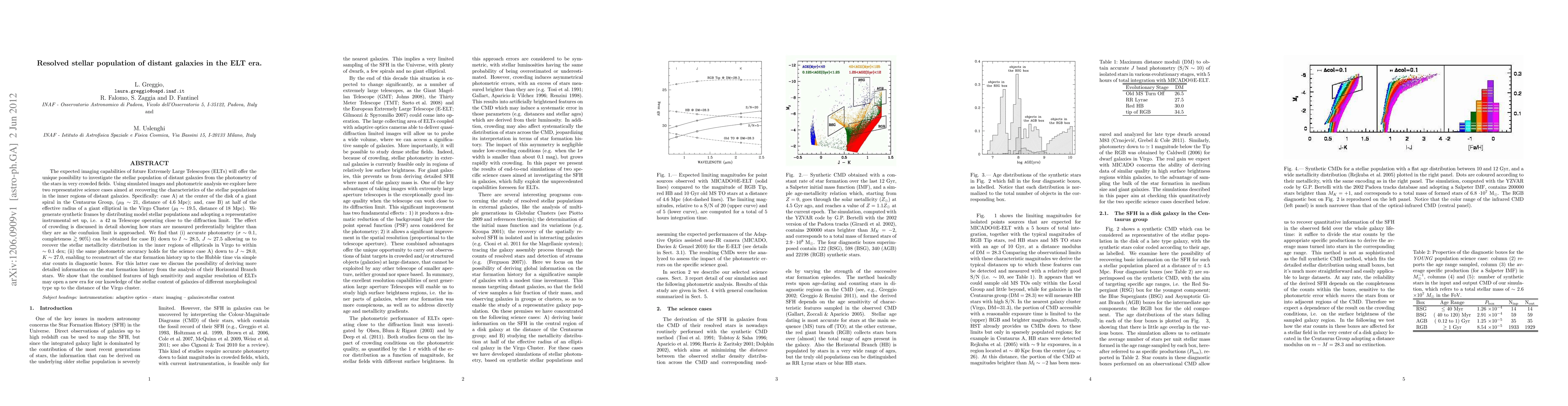 This paper explores the potential of future Extremely Large Telescopes (ELTs) to investigate the stellar populations in distant galaxies through detailed photometry. It demonstrates that ELTs can achieve accurate stellar photometry and recover stellar metallicity distributions and star formation histories in elliptical galaxies and spiral galaxies, respectively, up to the distance of the Virgo Cluster.