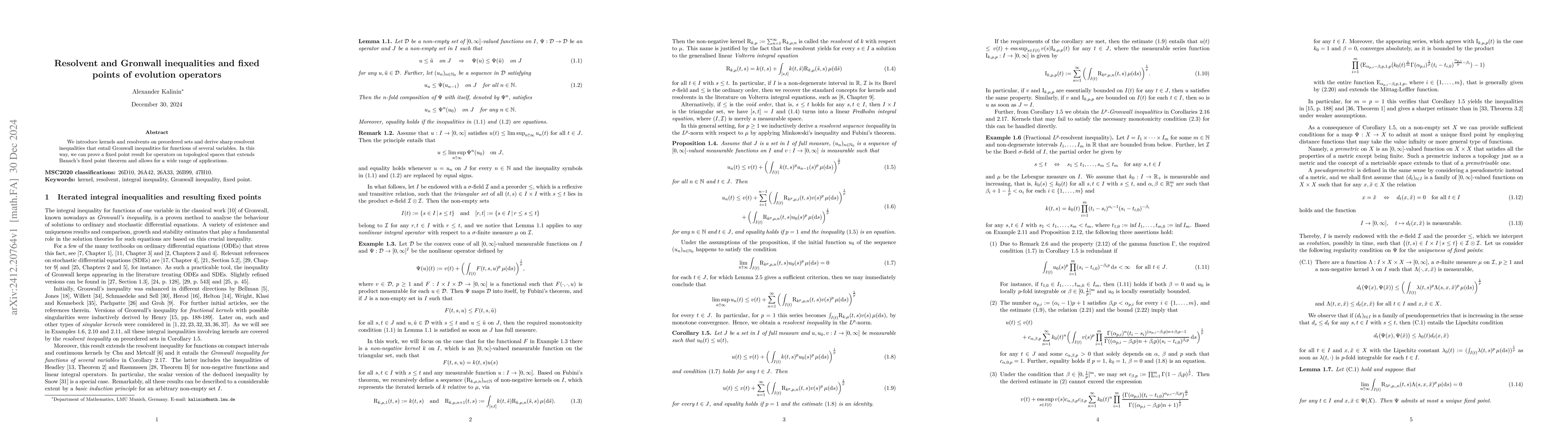 We introduce kernels and resolvents on preordered sets and derive sharp resolvent inequalities that entail Gronwall inequalities for functions of several variables. In this way, we can prove a fixed point result for operators on topological spaces that extends Banach's fixed point theorem and allows for a wide range of applications.