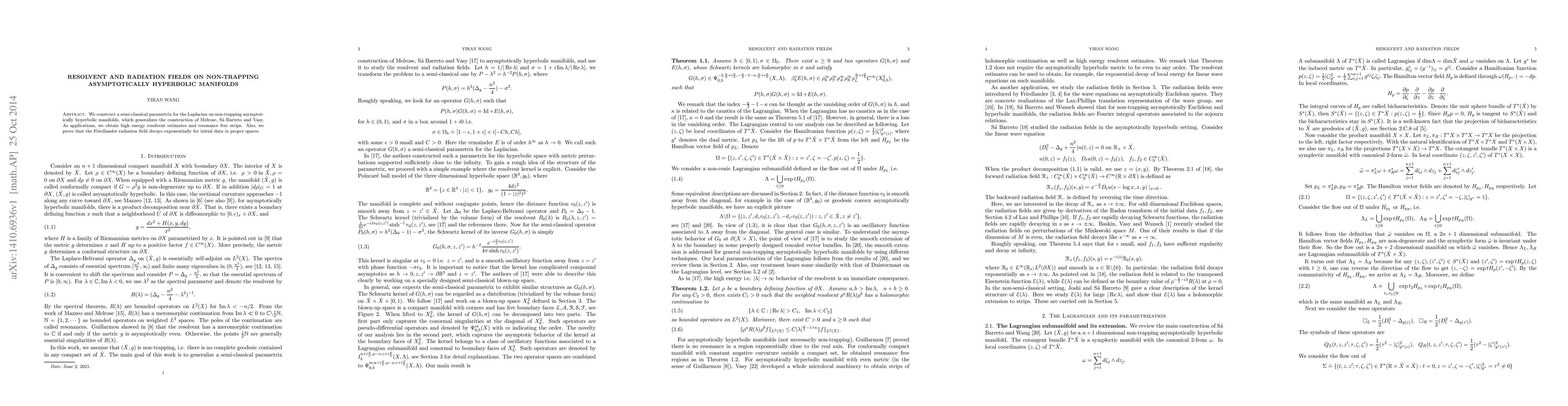 This paper constructs a semi-classical parametrix for the Laplacian on non-trapping asymptotically hyperbolic manifolds, extending previous work. It provides high energy resolvent estimates, resonance-free strips, and proves exponential decay of the Friedlander radiation field for suitable initial data.
