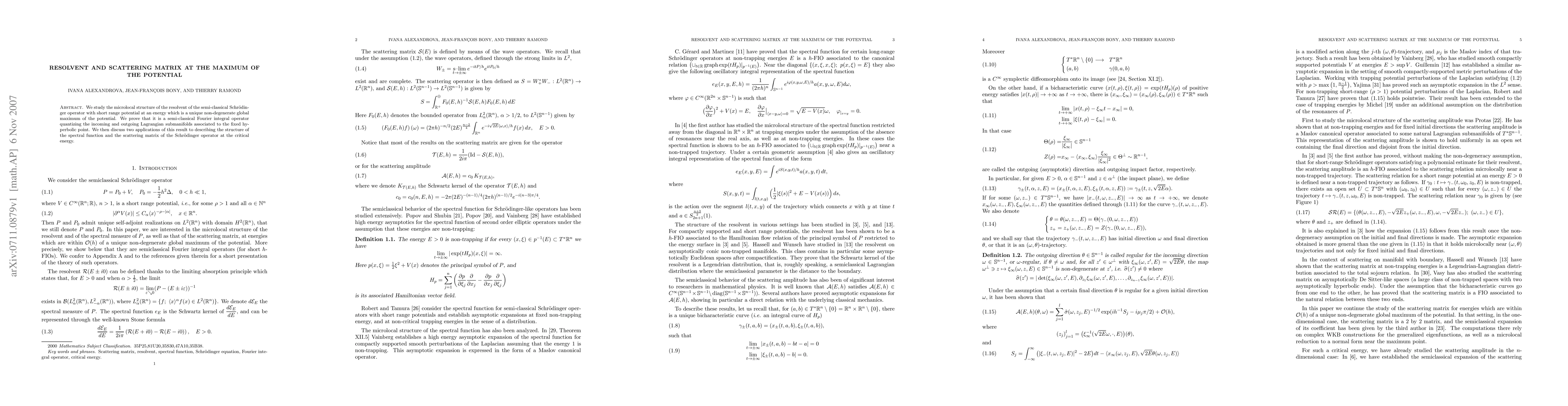 We study the microlocal structure of the resolvent of the semi-classical Schrodinger operator with short range potential at an energy which is a unique non-degenerate global maximum of the potential. We prove that it is a semi-classical Fourier integral operator quantizing the incoming and outgoing Lagrangian submanifolds associated to the fixed hyperbolic point. We then discuss two applications of this result to describing the structure of the spectral function and the scattering matrix of the Schrodinger operator at the critical energy.