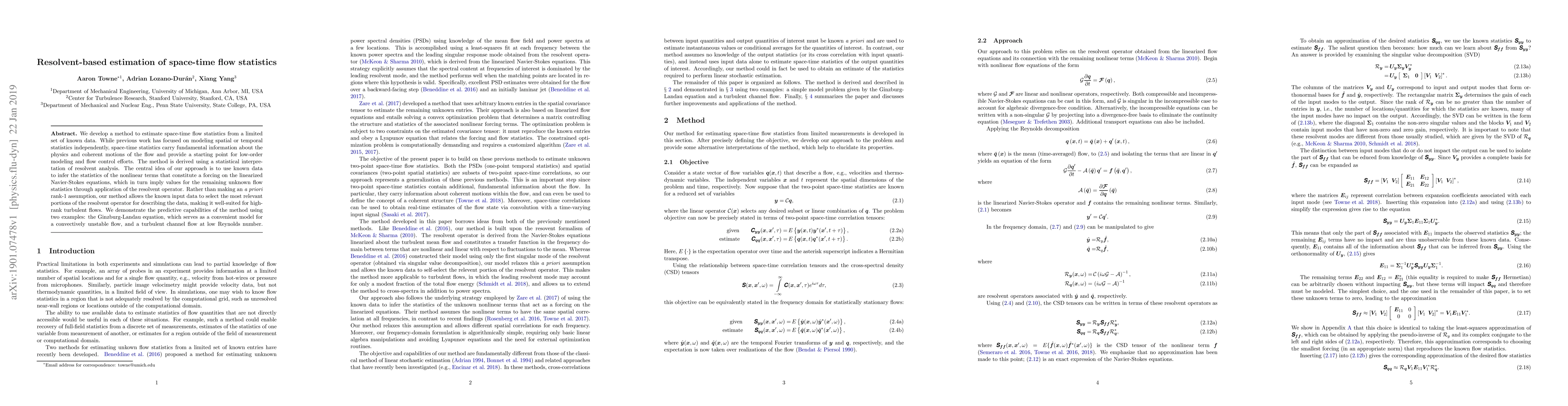 This paper introduces a novel method for estimating space-time flow statistics using resolvent analysis, allowing for the inference of nonlinear terms from limited data. The approach selects relevant portions of the resolvent operator based on known input data, making it effective for high-rank turbulent flows, as demonstrated through examples of a Ginzburg-Landau equation and a low Reynolds number turbulent channel flow.
