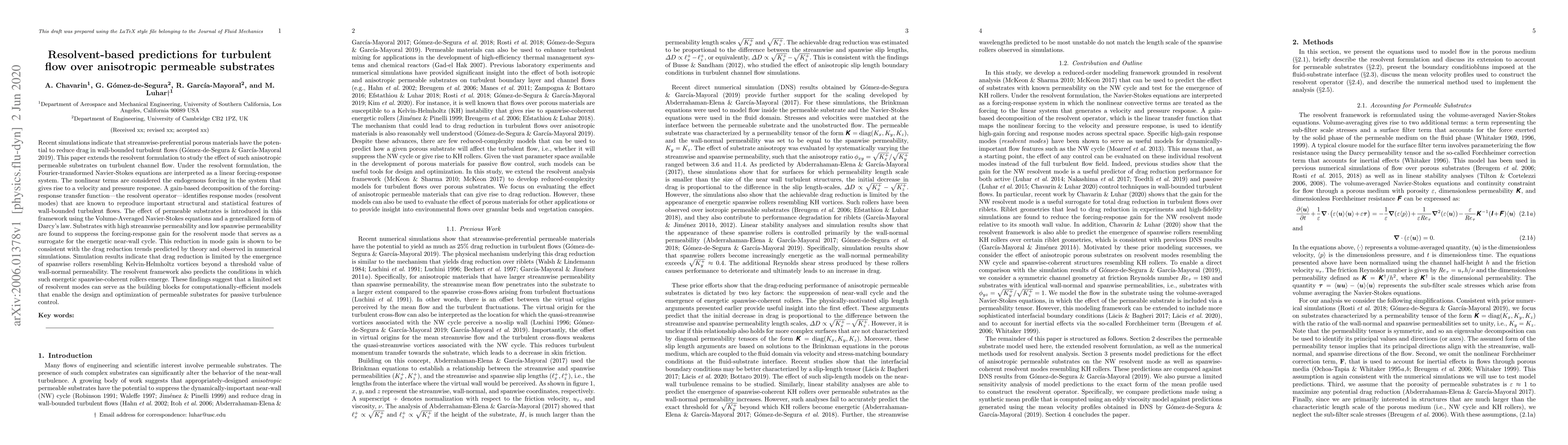 This paper uses a resolvent formulation to study the impact of anisotropic permeable substrates on turbulent channel flow, finding that streamwise-preferential substrates reduce drag by suppressing key turbulent modes. The study also identifies the conditions under which spanwise rollers emerge, limiting the drag reduction potential.