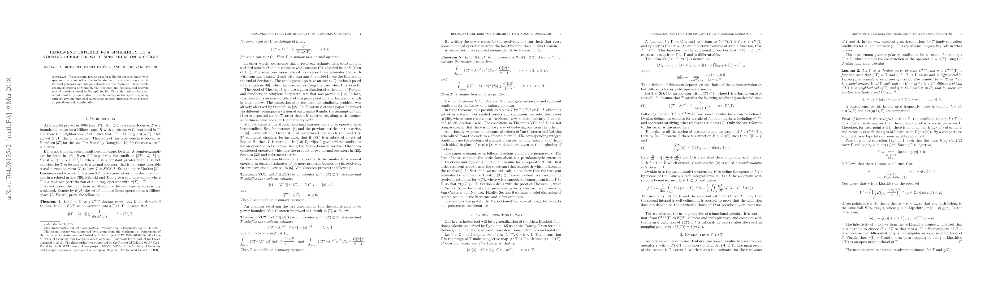 We give some new criteria for a Hilbert space operator with spectrum on a smooth curve to be similar to a normal operator, in terms of pointwise and integral estimates of the resolvent. These results generalize criteria of Stampfli, Van Casteren and Naboko, and answer several questions posed by Stampfli. The main tools are from our recent results on dilation to the boundary of the spectrum, along with the Dynkin functional calculus for smooth functions, which is based on pseudoanalytic continuation.
