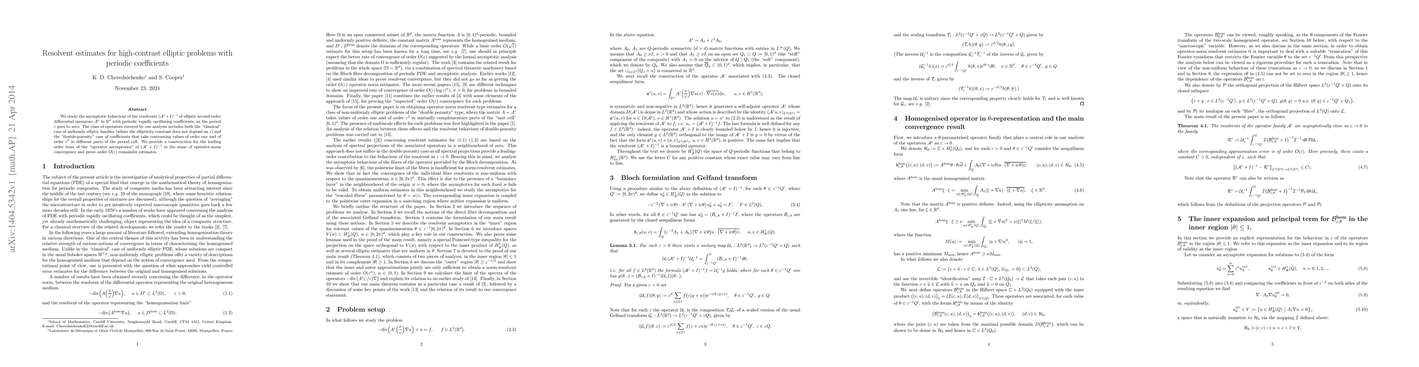 This paper investigates the asymptotic behavior of the resolvents of elliptic differential operators with rapidly oscillating periodic coefficients as the period approaches zero. It covers both uniformly elliptic and "double-porosity" cases, providing leading order terms and $O(\varepsilon)$ remainder estimates for the operator asymptotics.