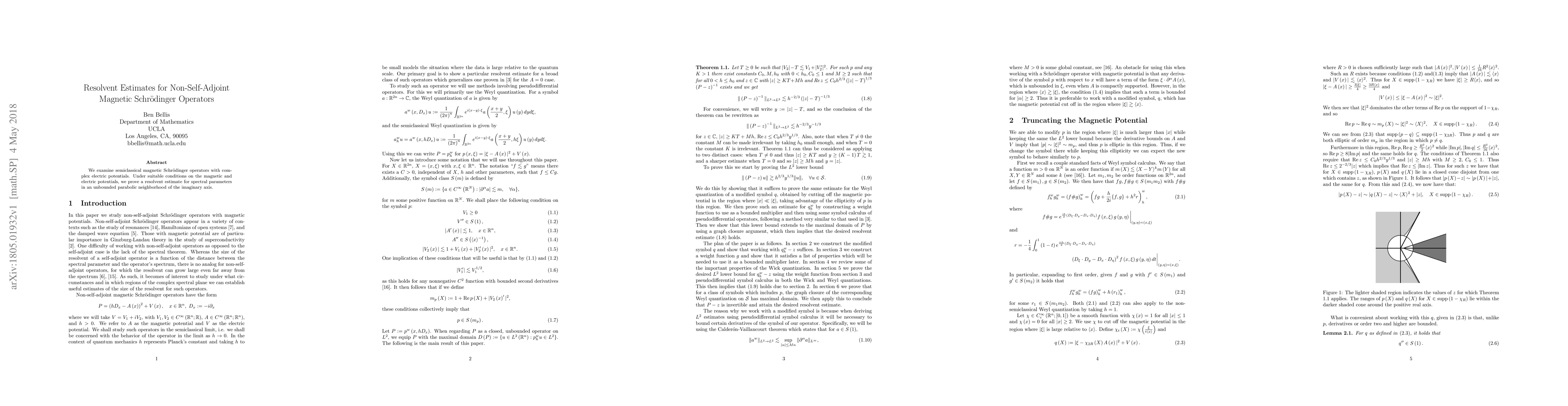 Summary: This paper proves a resolvent estimate for semiclassical magnetic Schrödinger operators with complex electric potentials, establishing bounds under suitable conditions on the magnetic and electric potentials in an unbounded parabolic neighborhood near the imaginary axis.