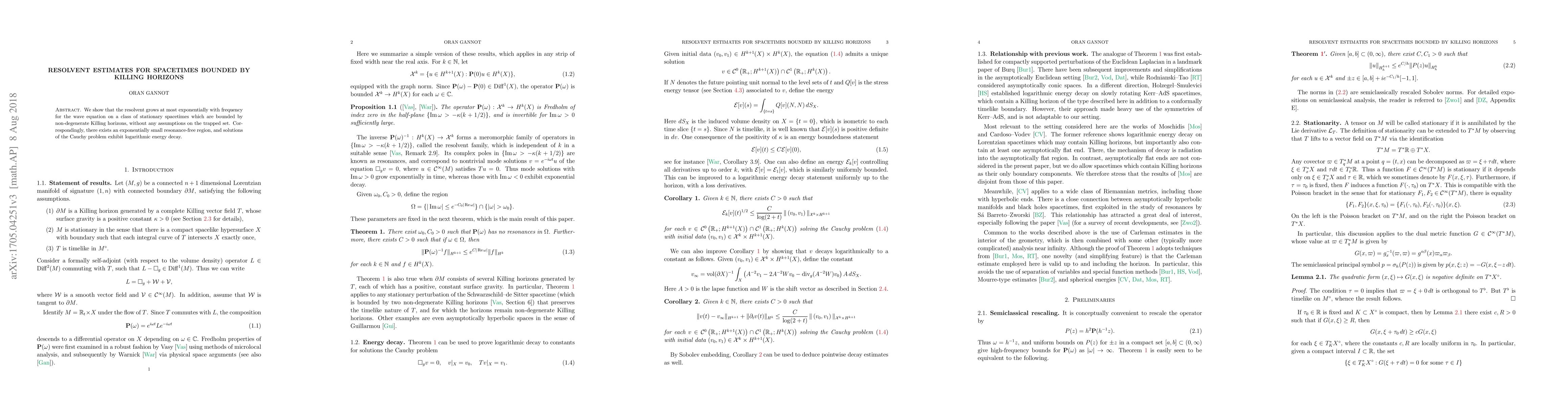 Summary: This paper establishes exponential growth bounds on the resolvent for the wave equation on stationary spacetimes bounded by non-degenerate Killing horizons, demonstrating an exponentially small resonance-free region and logarithmic energy decay for solutions to the Cauchy problem.