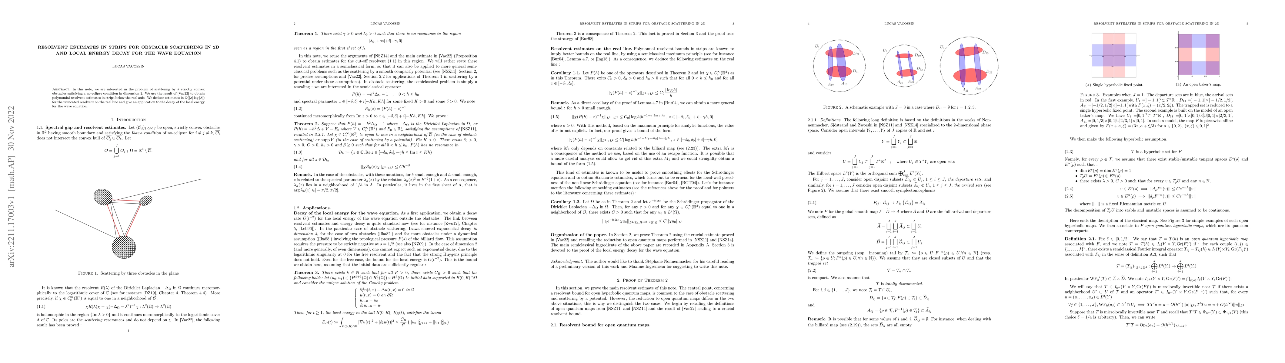This paper investigates scattering by strictly convex obstacles in 2D, deriving polynomial resolvent estimates in strips below the real axis. It applies these estimates to demonstrate local energy decay for the wave equation.