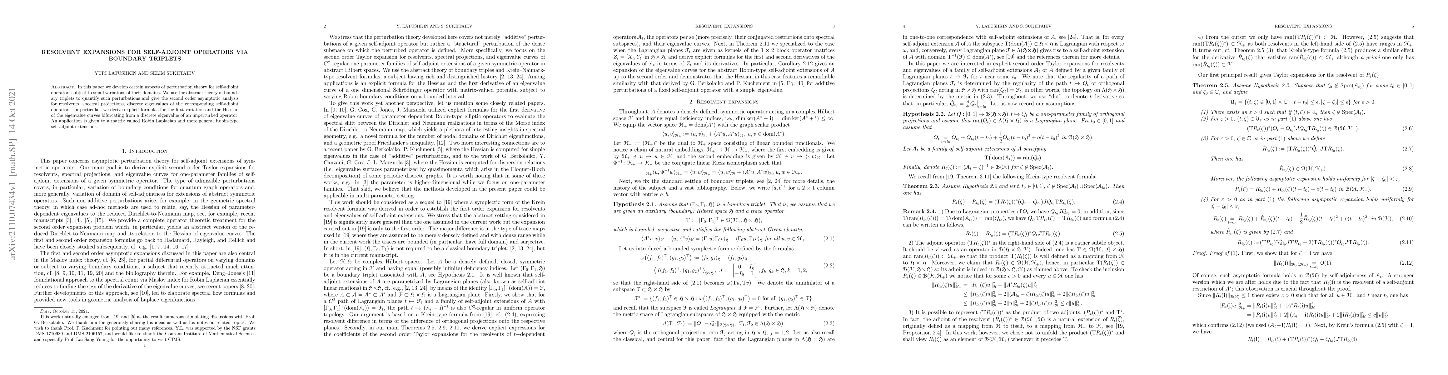 This paper develops perturbation theory for self-adjoint operators using boundary triplets, providing second-order asymptotic analysis for resolvents and spectral projections. It also derives explicit formulas for the first variation and Hessian of eigenvalue curves, with applications to matrix-valued Robin Laplacians and Robin-type extensions.