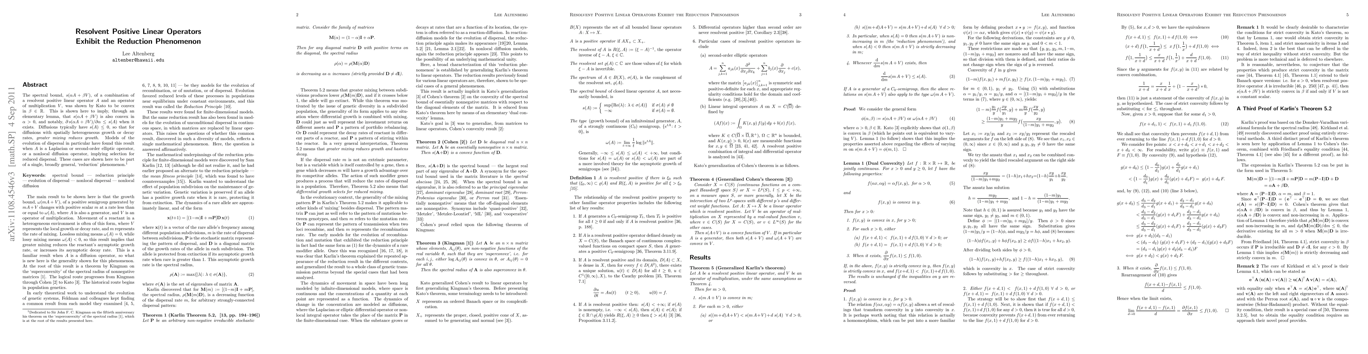 The spectral bound, s(a A + b V), of a combination of a resolvent positive linear operator A and an operator of multiplication V, was shown by Kato to be convex in b \in R. This is shown here, through an elementary lemma, to imply that s(a A + b V) is also convex in a > 0, and notably, \partial s(a A + b V) / \partial a <= s(A) when it exists. Diffusions typically have s(A) <= 0, so that for diffusions with spatially heterogeneous growth or decay rates, greater mixing reduces growth. Models of the evolution of dispersal in particular have found this result when A is a Laplacian or second-order elliptic operator, or a nonlocal diffusion operator, implying selection for reduced dispersal. These cases are shown here to be part of a single, broadly general, `reduction' phenomenon.