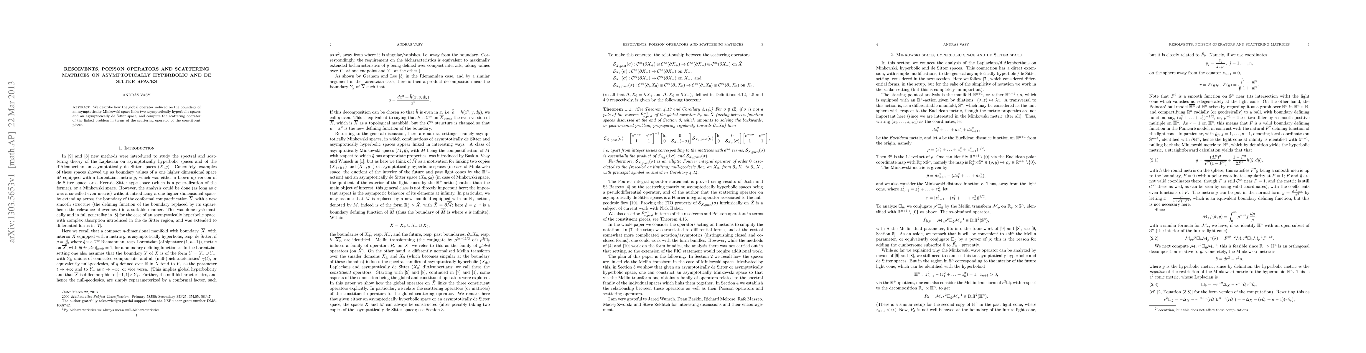 We describe how the global operator induced on the boundary of an asymptotically Minkowski space links two asymptotically hyperbolic spaces and an asymptotically de Sitter space, and compute the scattering operator of the linked problem in terms of the scattering operator of the constituent pieces.