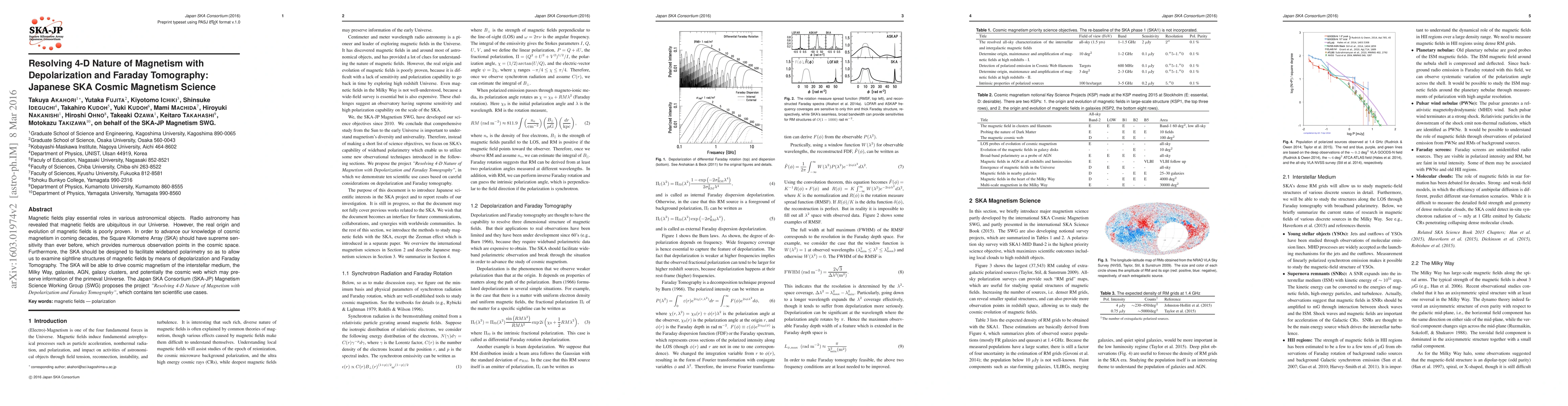 Magnetic fields play essential roles in various astronomical objects. Radio astronomy has revealed that magnetic fields are ubiquitous in our Universe. However, the real origin and evolution of magnetic fields is poorly proven. In order to advance our knowledge of cosmic magnetism in coming decades, the Square Kilometre Array (SKA) should have supreme sensitivity than ever before, which provides numerous observation points in the cosmic space. Furthermore, the SKA should be designed to facilitate wideband polarimetry so as to allow us to examine sightline structures of magnetic fields by means of depolarization and Faraday Tomography. The SKA will be able to drive cosmic magnetism of the interstellar medium, the Milky Way, galaxies, AGN, galaxy clusters, and potentially the cosmic web which may preserve information of the primeval Universe. The Japan SKA Consortium (SKA-JP) Magnetism Science Working Group (SWG) proposes the project "Resolving 4-D Nature of Magnetism with Depolarization and Faraday Tomography", which contains ten scientific use cases.