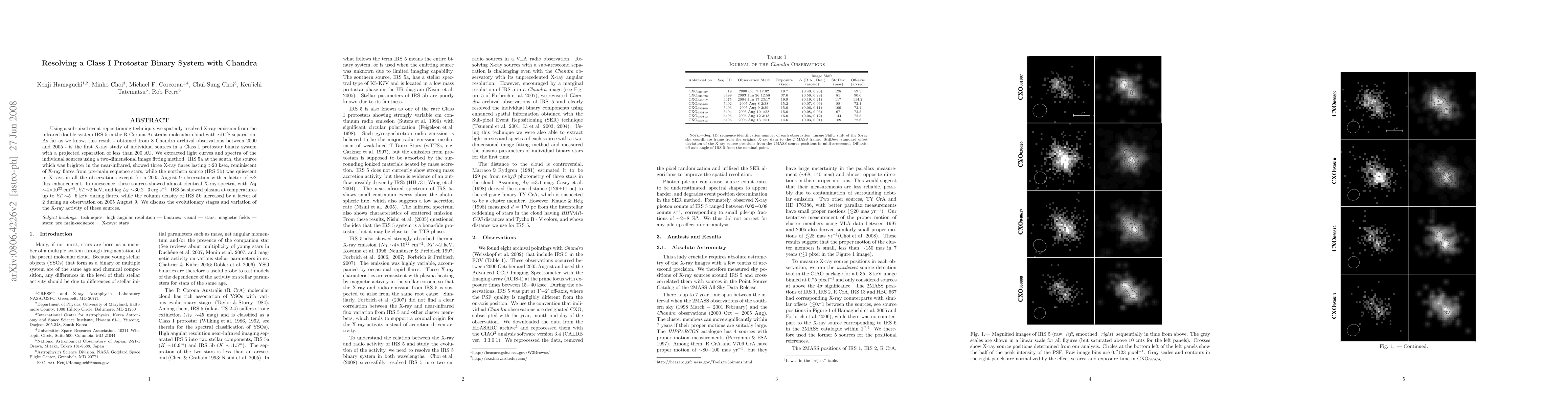 This study utilized Chandra X-ray observations to resolve and analyze the X-ray emissions from the binary protostar system IRS 5 in R Corona Australis, revealing distinct X-ray activity between the two components. IRS 5a exhibited significant X-ray flares, while IRS 5b remained mostly quiescent, highlighting differences in their evolutionary stages and X-ray behavior.