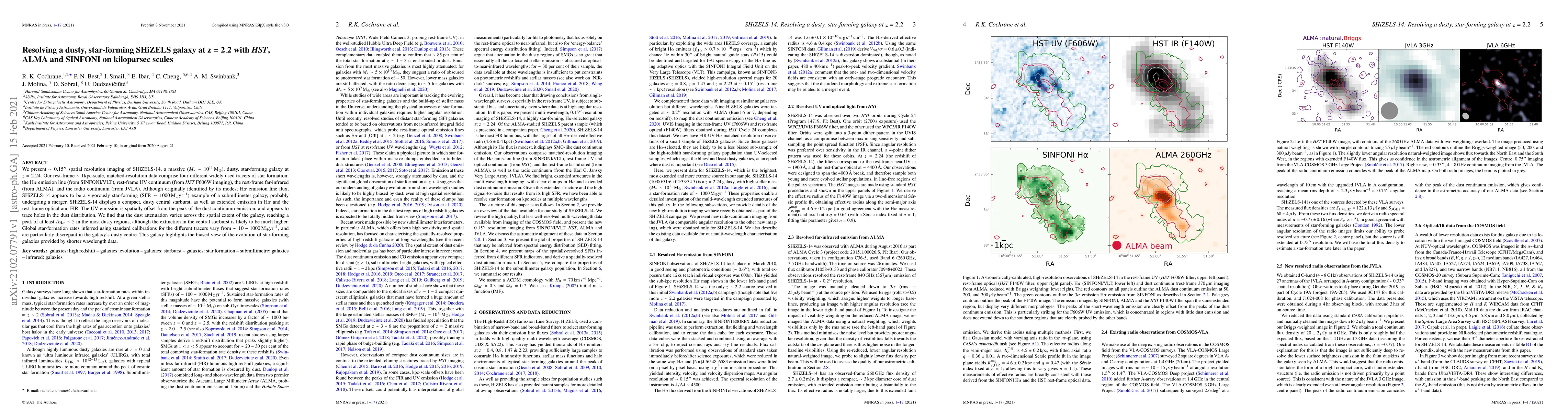 We present ~0.15'' spatial resolution imaging of SHiZELS-14, a massive (M*~10^11 M_sol), dusty, star-forming galaxy at z=2.24. Our rest-frame ~1kpc-scale, matched-resolution data comprise four different widely used tracers of star formation: the H-alpha emission line (from SINFONI/VLT), rest-frame UV continuum (from HST F606W imaging), the rest-frame far-infrared (from ALMA), and the radio continuum (from JVLA). Although originally identified by its modest H-alpha emission line flux, SHiZELS-14 appears to be a vigorously star-forming (SFR~1000 M_sol/yr) example of a submillimeter galaxy, probably undergoing a merger. SHiZELS-14 displays a compact, dusty central starburst, as well as extended emission in $\rm{H}\alpha$ and the rest-frame optical and FIR. The UV emission is spatially offset from the peak of the dust continuum emission, and appears to trace holes in the dust distribution. We find that the dust attenuation varies across the spatial extent of the galaxy, reaching a peak of at least A_H-alpha~5 in the most dusty regions, although the extinction in the central starburst is likely to be much higher. Global star-formation rates inferred using standard calibrations for the different tracers vary from ~10-1000 M_sol/yr, and are particularly discrepant in the galaxy's dusty centre. This galaxy highlights the biased view of the evolution of star-forming galaxies provided by shorter wavelength data.