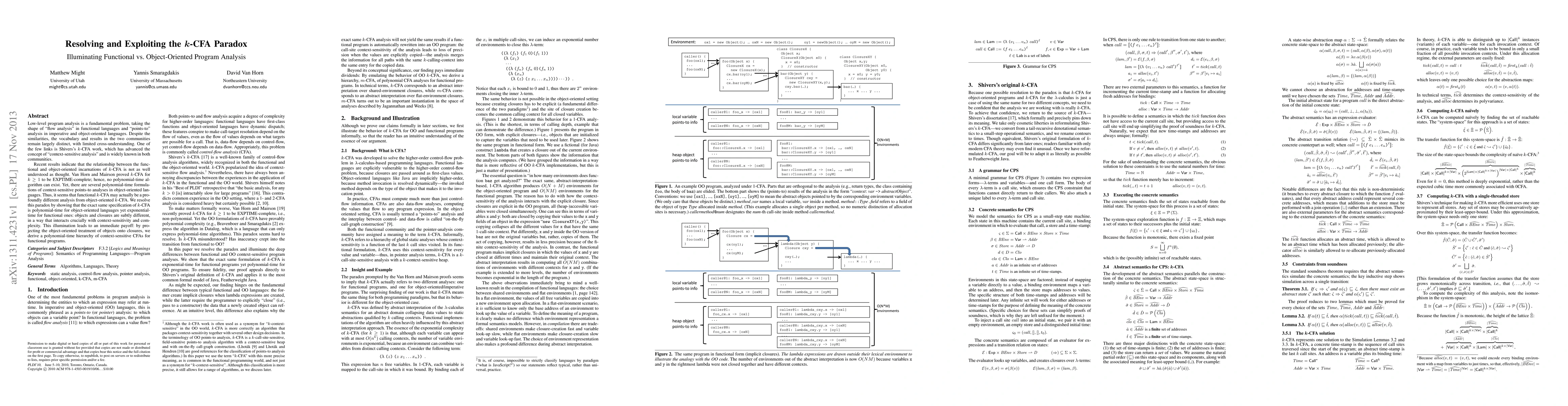 Low-level program analysis is a fundamental problem, taking the shape of "flow analysis" in functional languages and "points-to" analysis in imperative and object-oriented languages. Despite the similarities, the vocabulary and results in the two communities remain largely distinct, with limited cross-understanding. One of the few links is Shivers's $k$-CFA work, which has advanced the concept of "context-sensitive analysis" and is widely known in both communities. Recent results indicate that the relationship between the functional and object-oriented incarnations of $k$-CFA is not as well understood as thought. Van Horn and Mairson proved $k$-CFA for $k \geq 1$ to be EXPTIME-complete; hence, no polynomial-time algorithm can exist. Yet, there are several polynomial-time formulations of context-sensitive points-to analyses in object-oriented languages. Thus, it seems that functional $k$-CFA may actually be a profoundly different analysis from object-oriented $k$-CFA. We resolve this paradox by showing that the exact same specification of $k$-CFA is polynomial-time for object-oriented languages yet exponential- time for functional ones: objects and closures are subtly different, in a way that interacts crucially with context-sensitivity and complexity. This illumination leads to an immediate payoff: by projecting the object-oriented treatment of objects onto closures, we derive a polynomial-time hierarchy of context-sensitive CFAs for functional programs.