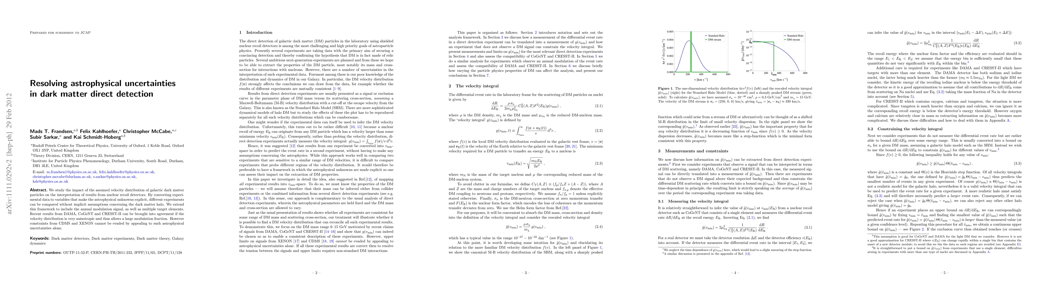 This paper investigates how the assumed velocity distribution of dark matter affects the interpretation of direct detection experiments, proposing a method to compare results without hidden assumptions about the dark matter halo. It finds that recent results from DAMA, CoGeNT, and CRESST-II can align if the velocity distribution is highly anisotropic, but constraints from CDMS and XENON remain unaffected by these astrophysical uncertainties alone.