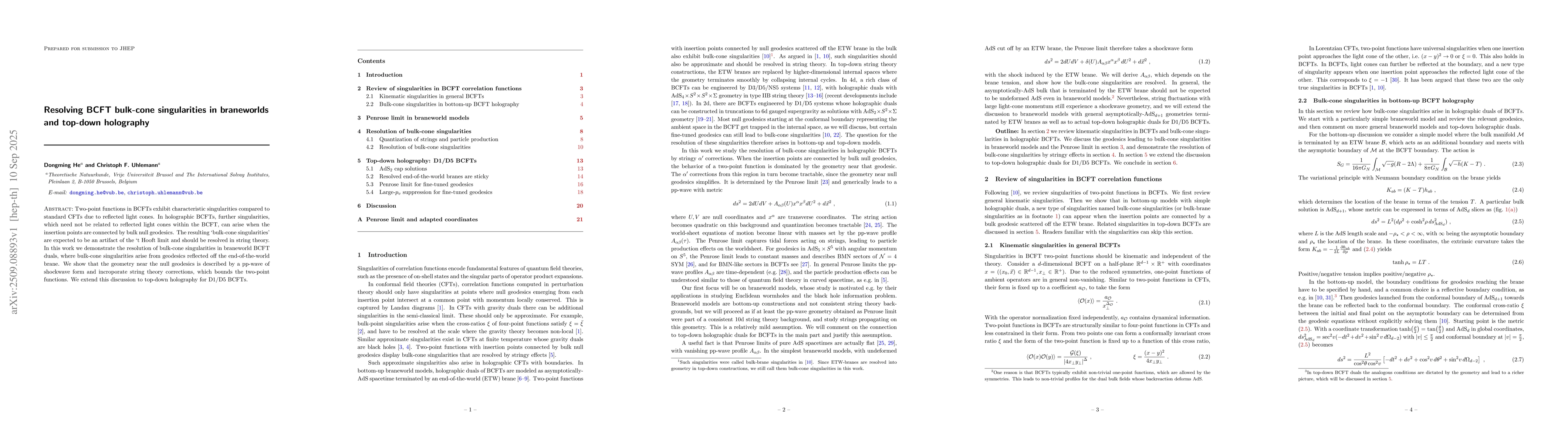 Two-point functions in BCFTs exhibit characteristic singularities compared to standard CFTs due to reflected light cones. In holographic BCFTs, further singularities, which need not be related to reflected light cones within the BCFT, can arise when the insertion points are connected by bulk null geodesics. The resulting `bulk-cone singularities' are expected to be an artifact of the `t Hooft limit and should be resolved in string theory. In this work we demonstrate the resolution of bulk-cone singularities in braneworld BCFT duals, where bulk-cone singularities arise from geodesics reflected off the end-of-the-world brane. We show that the geometry near the null geodesics is described by a pp-wave of shockwave form and incroporate string theory corrections, which bounds the two-point functions. We extend this discussion to top-down holography for D1/D5 BCFTs.