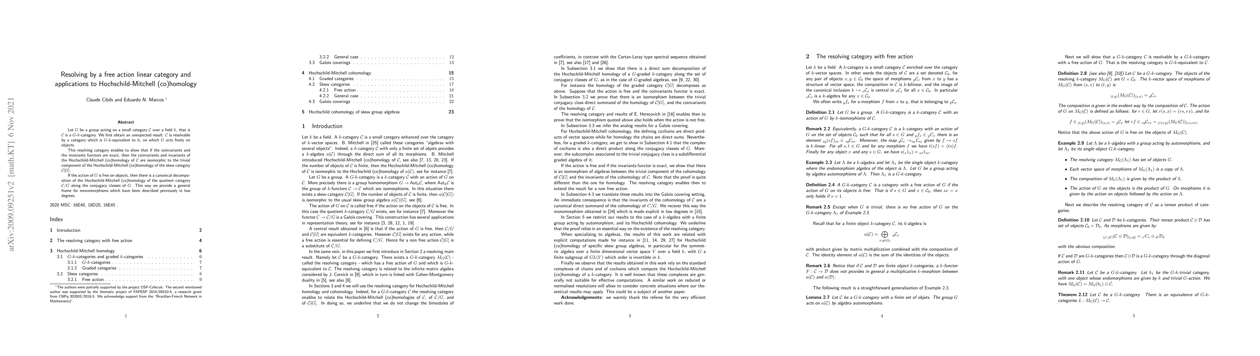 The paper introduces a method to resolve categories under group actions, preserving essential (co)homological properties, and applies this to Hochschild-Mitchell (co)homology.