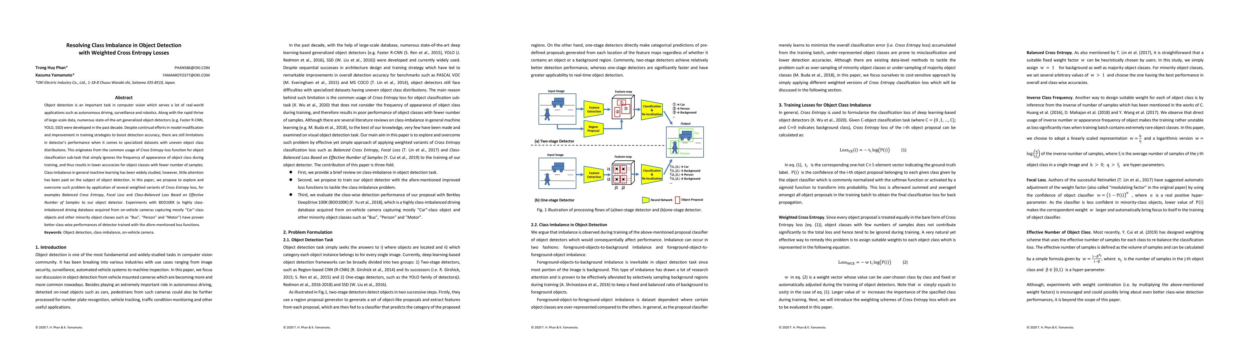This paper proposes using weighted Cross Entropy losses, such as Balanced Cross Entropy, Focal Loss, and Class-Balanced Loss, to address class imbalance in object detection. Experiments on the BDD100K dataset show improved performance for minority classes when these losses are applied.