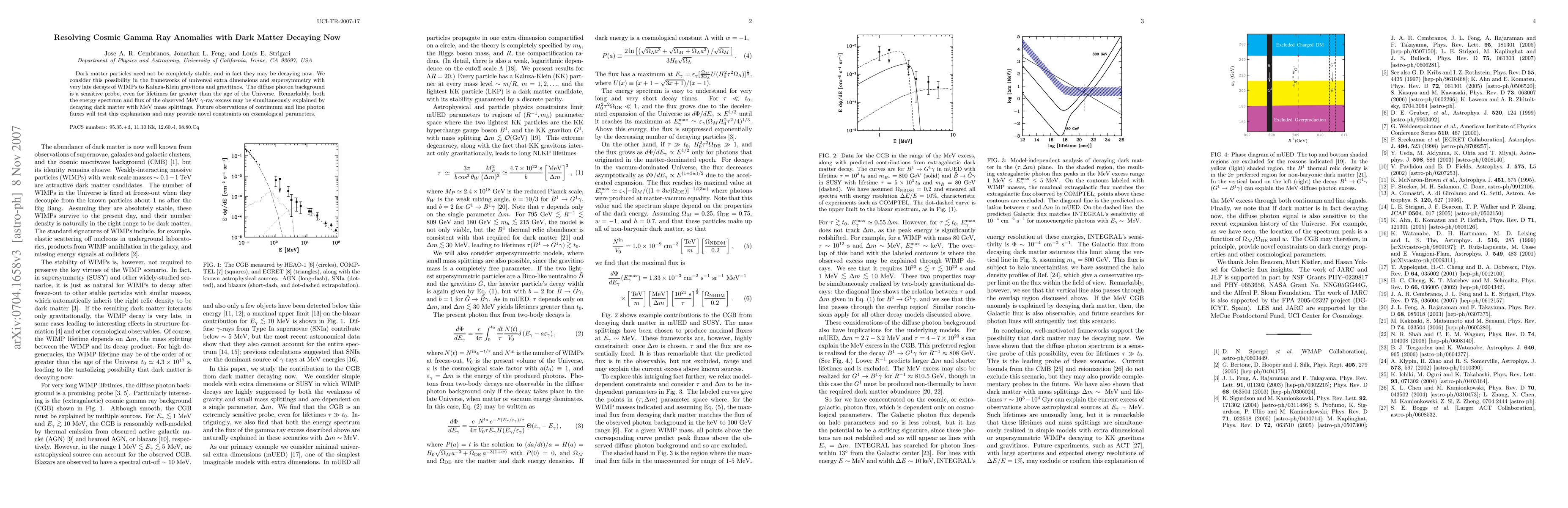 This paper explores the potential of decaying dark matter, specifically within frameworks of extra dimensions and supersymmetry, to explain the observed MeV gamma ray excess. It suggests that the diffuse photon background can reveal insights into dark matter decay, providing a novel method to test cosmological parameters.
