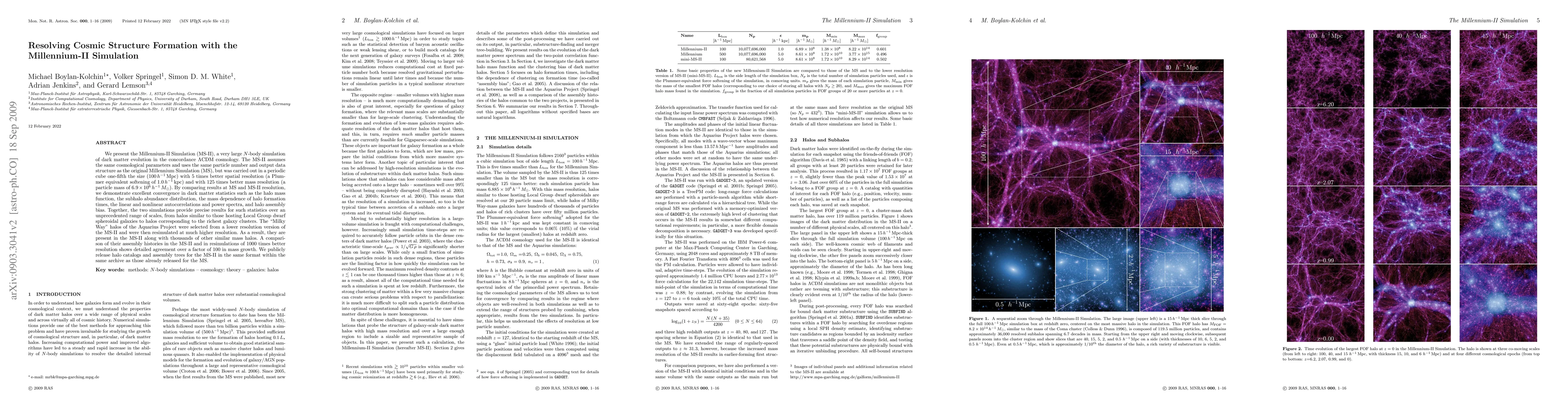The Millennium-II Simulation provides a high-resolution N-body simulation of dark matter evolution in the LCDM cosmology, offering improved convergence in dark matter statistics compared to the original Millennium Simulation. The MS-II's detailed results, including halo mass functions and assembly histories, are publicly available for research.