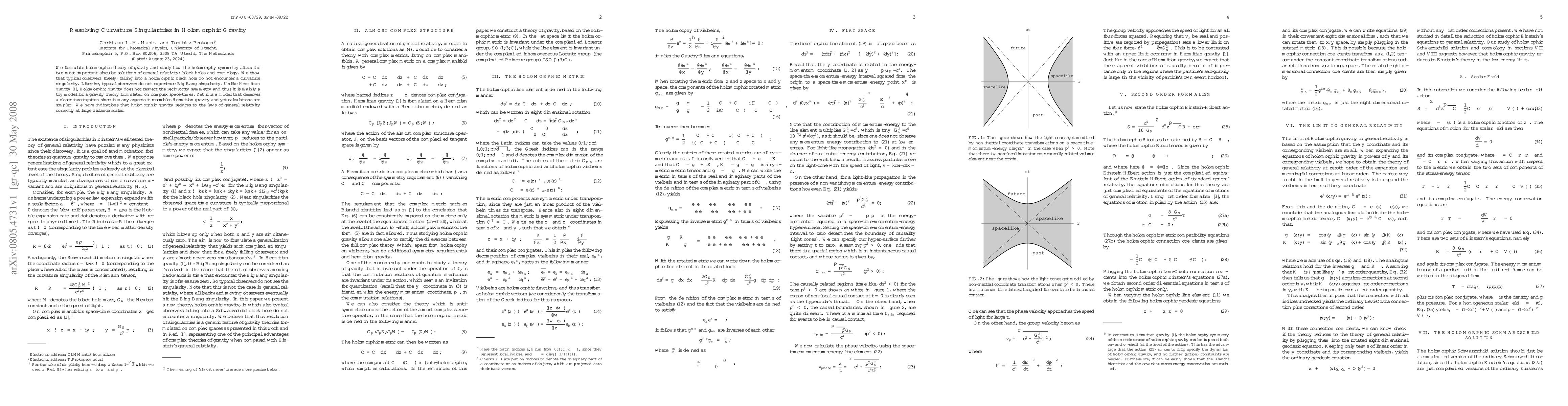 We formulate holomorphic theory of gravity and study how the holomorphy symmetry alters the two most important singular solutions of general relativity: black holes and cosmology. We show that typical observers (freely) falling into a holomorphic black hole do not encounter a curvature singularity. Likewise, typical observers do not experience Big Bang singularity. Unlike Hermitian gravity \cite{MantzHermitianGravity}, Holomorphic gravity does not respect the reciprocity symmetry and thus it is mainly a toy model for a gravity theory formulated on complex space-times. Yet it is a model that deserves a closer investigation since in many aspects it resembles Hermitian gravity and yet calculations are simpler. We have indications that holomorphic gravity reduces to the laws of general relativity correctly at large distance scales.