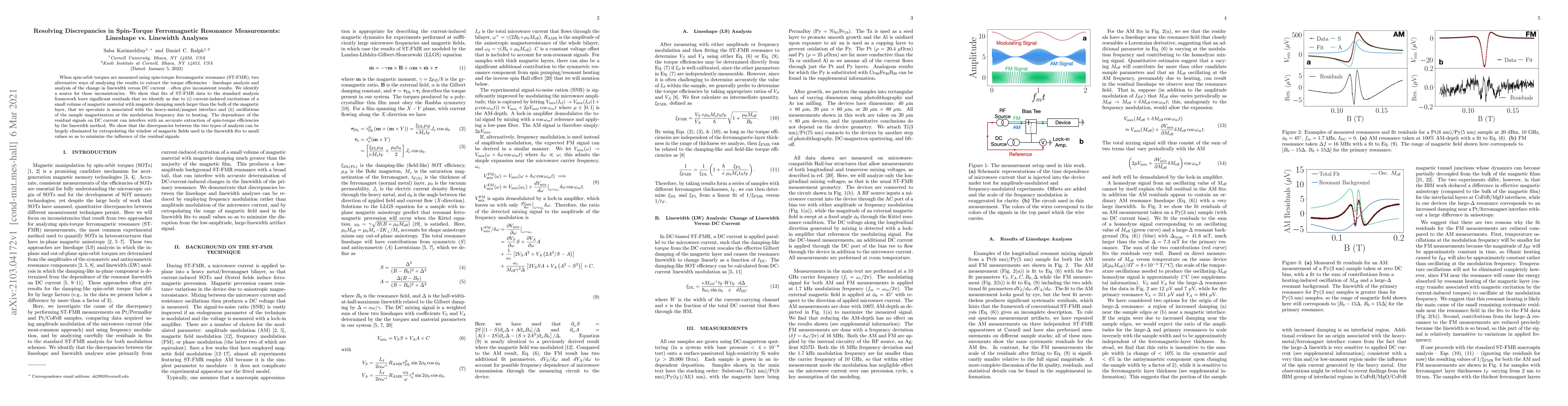 This paper identifies inconsistencies in spin-torque ferromagnetic resonance measurements arising from current-induced excitations and heating effects, which interfere with the extraction of spin-torque efficiencies. It proposes a method to minimize these discrepancies by extrapolating magnetic field fits to minimize residual signal influence.