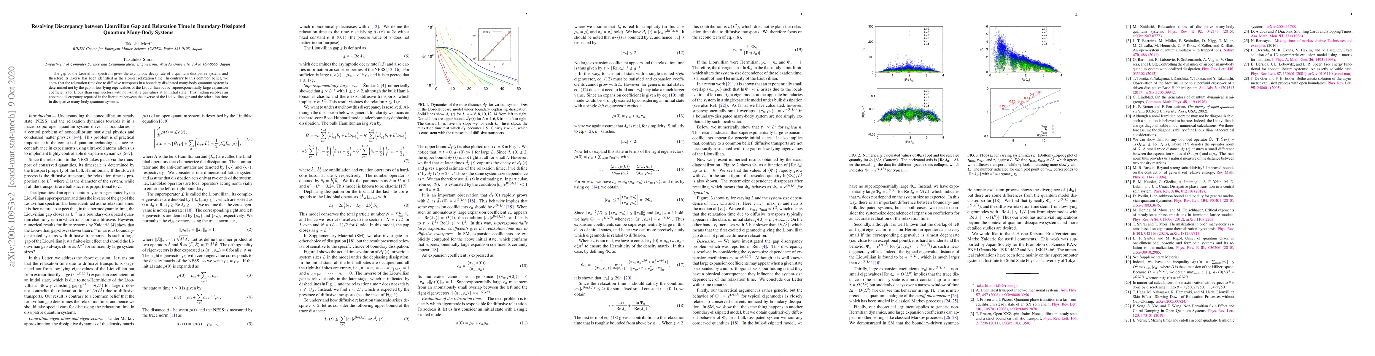 The study reveals that in boundary-dissipated quantum many-body systems, the relaxation time is not dictated by the Liouvillian gap, but rather by the superexponential expansion coefficients associated with eigenvectors having non-small eigenvalues. This resolves the discrepancy previously noted between the Liouvillian gap and the relaxation time.
