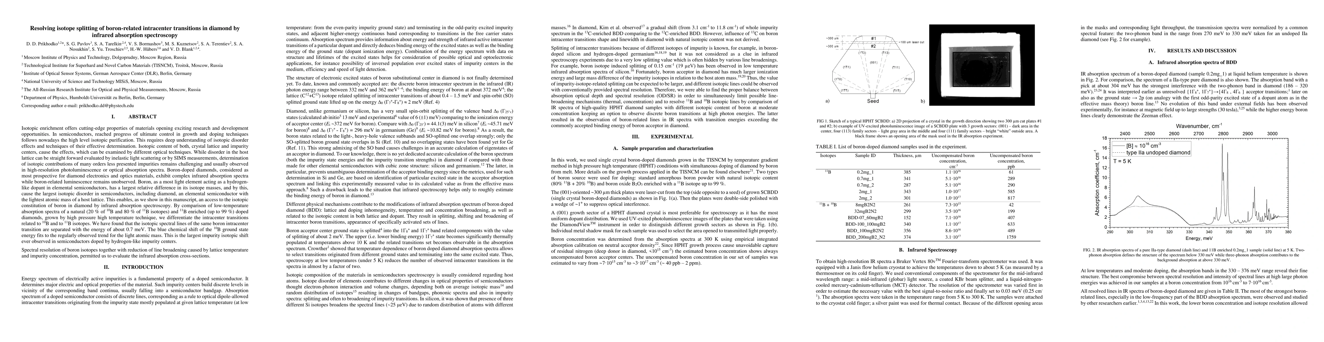 Isotopic enrichment offers cutting-edge properties of materials opening exciting research and development opportunities. In semiconductors, reached progress of ultimate control in growth and doping techniques follows nowadays the high level isotopic purification. This requires deep understanding of isotopic disorder effects and techniques of their effective determination. Isotopic content of both crystal lattice and impurity centers cause the effects, which can be examined by different optical techniques. While disorder in the host lattice can be straight forward evaluated by inelastic light scattering or by SIMS measurements, determination of isotopic contributions of many orders less presented impurities remains challenging and usually observed in high-resolution photoluminescence or optical absorption spectra. Boron-doped diamonds exhibit complex infrared absorption spectra while boron-related luminescence remains unobserved. Boron, as a most light element acting as a hydrogen-like dopant in elemental semiconductors, has a largest relative difference in its isotope masses, and by this, cause the largest isotopic disorder in semiconductors, including diamond, an elemental semiconductor with the lightest atomic mass of a host lattice. This enables an access to the isotopic constitution of boron in diamond by infrared absorption spectroscopy. By comparison of low-temperature absorption spectra of a natural (20% of 10B and 80% of 11B isotopes) and 11B enriched (up to 99%) doped diamonds we differentiate the intracenter transitions related to 10B and to 11B isotopes. We have found that the isotopic spectral lines of the same boron intracenter transition are separated with the energy of about 0.7 meV. This is the largest impurity isotopic shift ever observed in semiconductors doped by hydrogen-like impurity centers.