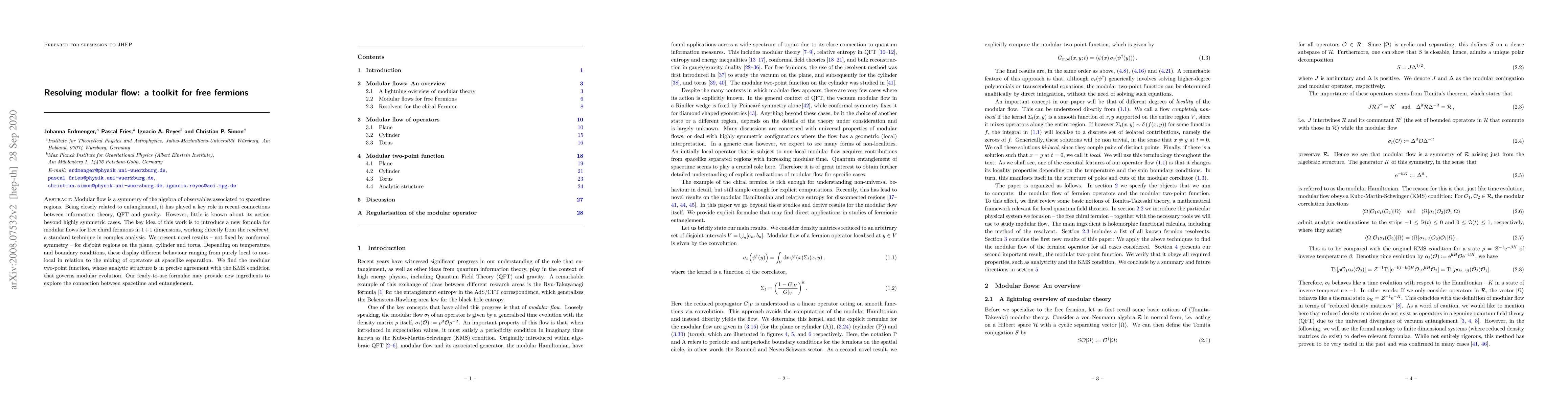 Modular flow is a symmetry of the algebra of observables associated to spacetime regions. Being closely related to entanglement, it has played a key role in recent connections between information theory, QFT and gravity. However, little is known about its action beyond highly symmetric cases. The key idea of this work is to introduce a new formula for modular flows for free chiral fermions in $1+1$ dimensions, working directly from the \textit{resolvent}, a standard technique in complex analysis. We present novel results -- not fixed by conformal symmetry -- for disjoint regions on the plane, cylinder and torus. Depending on temperature and boundary conditions, these display different behaviour ranging from purely local to non-local in relation to the mixing of operators at spacelike separation. We find the modular two-point function, whose analytic structure is in precise agreement with the KMS condition that governs modular evolution. Our ready-to-use formulae may provide new ingredients to explore the connection between spacetime and entanglement.