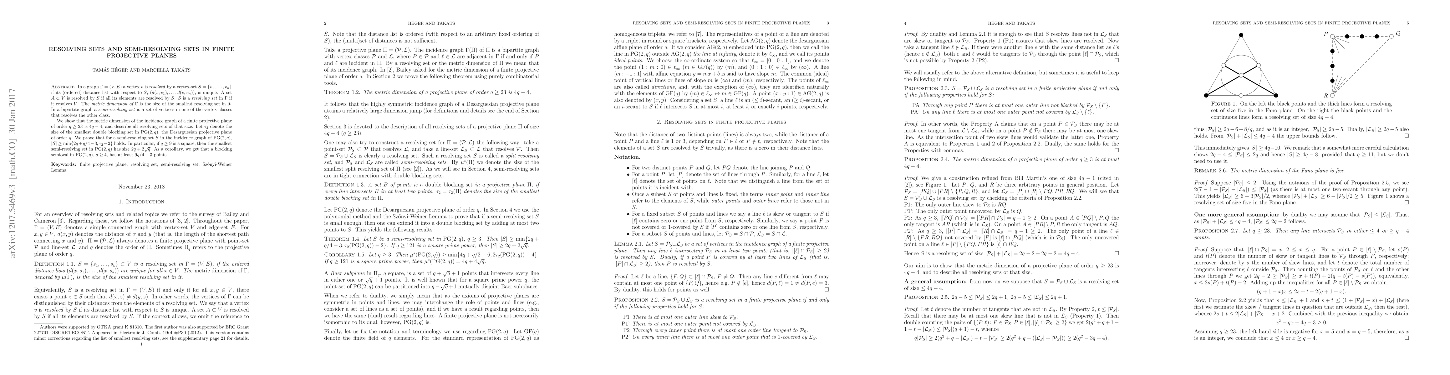 Researchers found that finite projective planes of order 23 or higher have metric dimensions of 4q-4 and identified smallest semi-resolving sets with specific sizes.