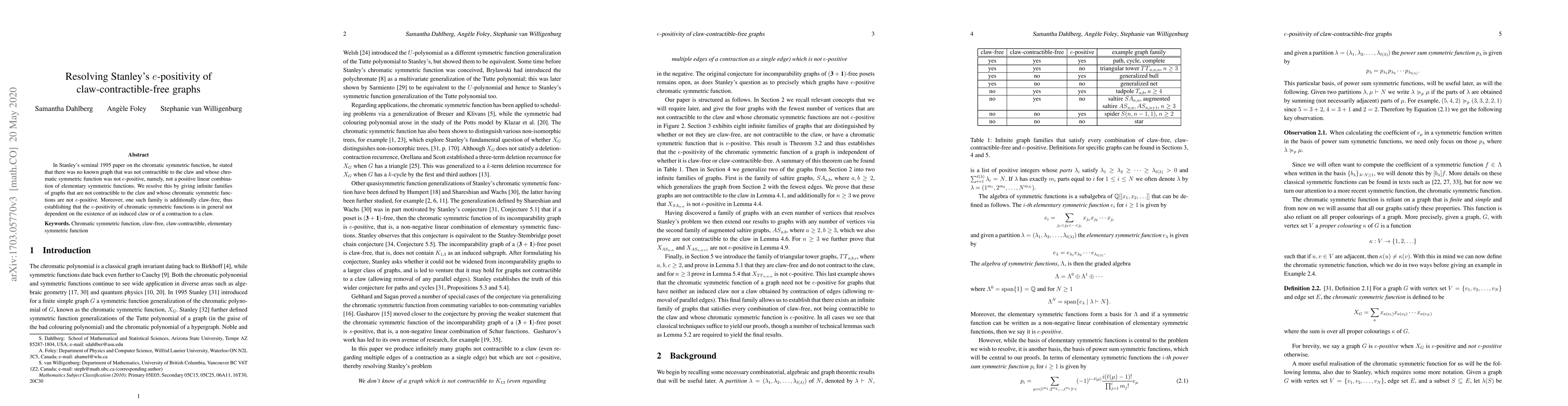 In Stanley's seminal 1995 paper on the chromatic symmetric function, he stated that there was no known graph that was not contractible to the claw and whose chromatic symmetric function was not $e$-positive, namely, not a positive linear combination of elementary symmetric functions. We resolve this by giving infinite families of graphs that are not contractible to the claw and whose chromatic symmetric functions are not $e$-positive. Moreover, one such family is additionally claw-free, thus establishing that the $e$-positivity of chromatic symmetric functions is in general not dependent on the existence of an induced claw or of a contraction to a claw.