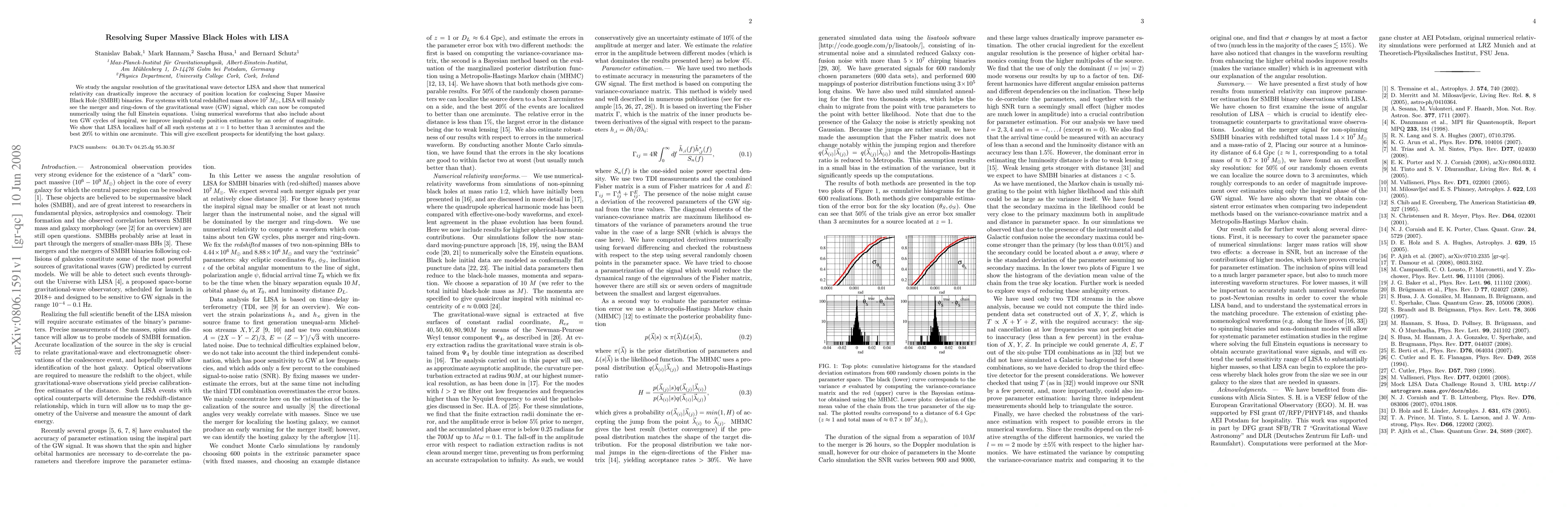 We study the angular resolution of the gravitational wave detector LISA and show that numerical relativity can drastically improve the accuracy of position location for coalescing Super Massive Black Hole (SMBH) binaries. For systems with total redshifted mass above $10^7 M_{\odot}$, LISA will mainly see the merger and ring-down of the gravitational wave (GW) signal, which can now be computed numerically using the full Einstein equations. Using numerical waveforms that also include about ten GW cycles of inspiral, we improve inspiral-only position estimates by an order of magnitude. We show that LISA localizes half of all such systems at $z=1$ to better than 3 arcminutes and the best 20% to within one arcminute. This will give excellent prospects for identifying the host galaxy.