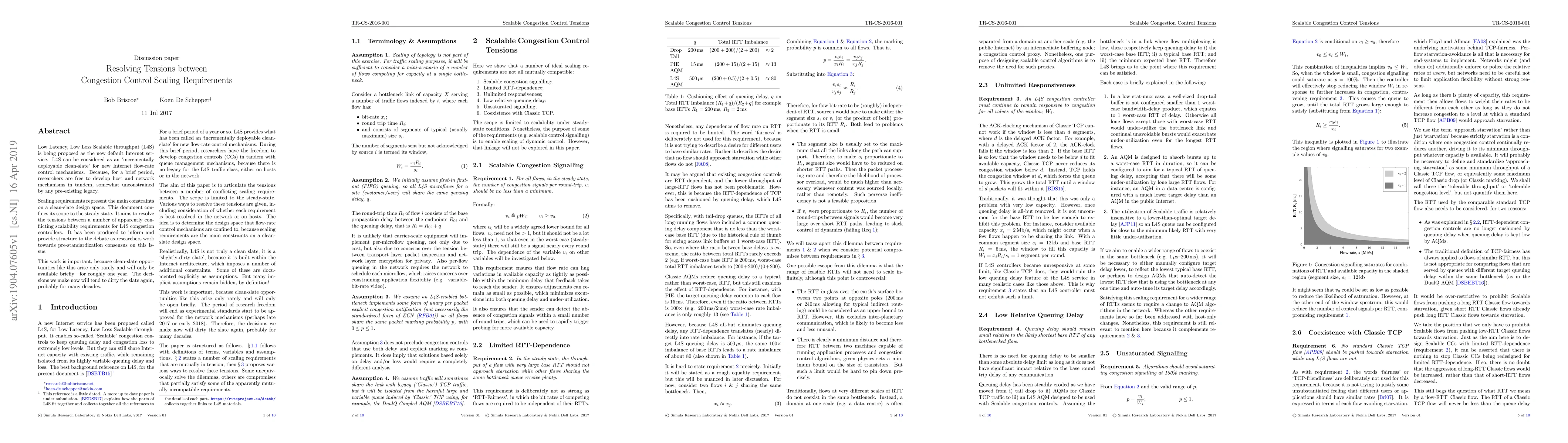 This paper proposes the Low Latency, Low Loss Scalable throughput (L4S) as a new default Internet service, aiming to resolve tensions between conflicting scalability requirements for L4S congestion controllers. It emphasizes the importance of making informed decisions now to maintain clean-slate opportunities for future Internet flow-rate control mechanisms.