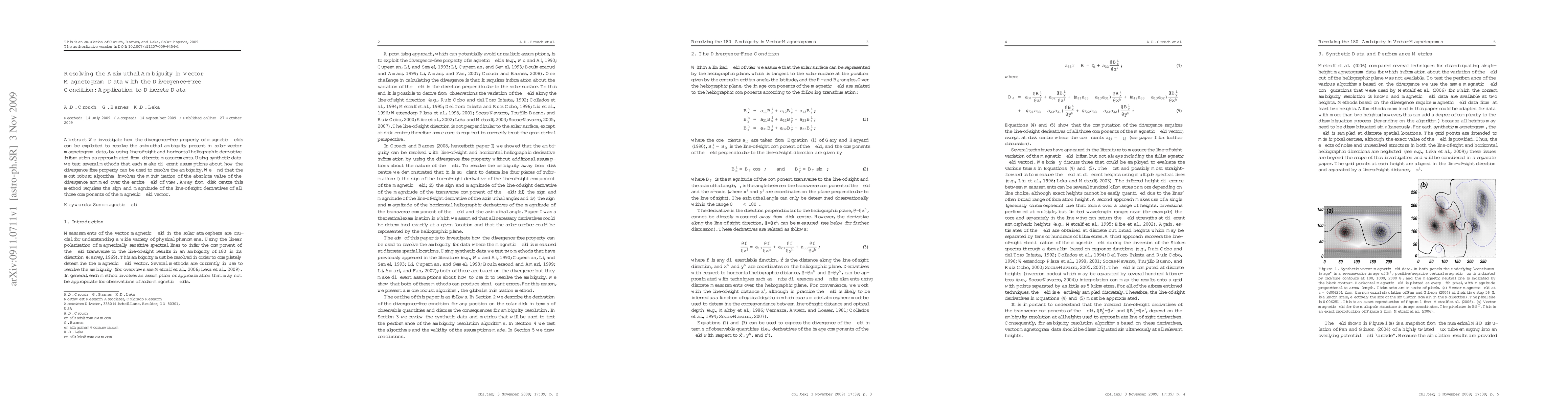 This paper explores methods to resolve the azimuthal ambiguity in solar vector magnetogram data by leveraging the divergence-free property of magnetic fields. The most robust approach minimizes the divergence summed over the field, requiring line-of-sight derivatives of the magnetic field components, especially effective away from the disk center.