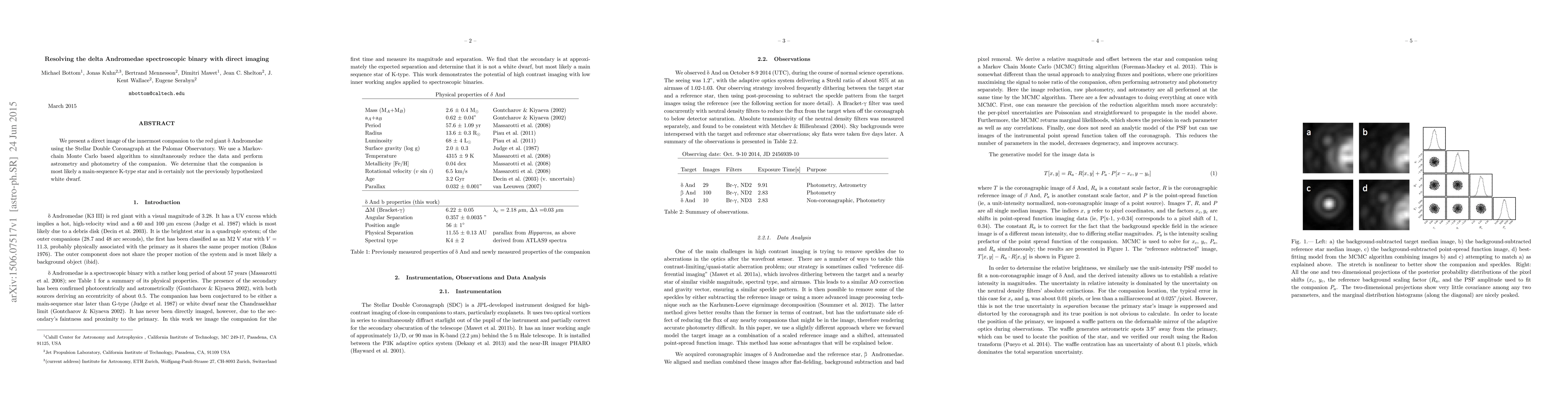 The research presents a direct image of the innermost companion to the star delta Andromedae using the Stellar Double Coronagraph at Palomar Observatory. It identifies the companion as a main-sequence K-type star, contradicting previous hypotheses of it being a white dwarf.