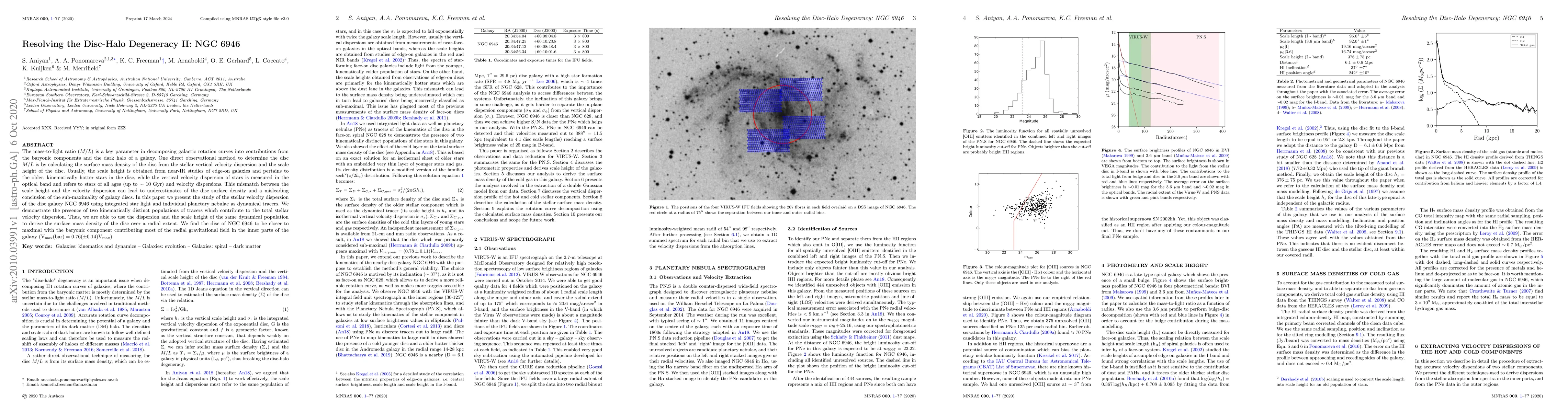 This paper investigates the stellar velocity dispersion in NGC 6946 using integrated star light and planetary nebulae, revealing two distinct kinematic populations. By matching the scale height and velocity dispersion of the same population, the study finds the disc of NGC 6946 to be closer to maximal, with the baryonic component dominating the gravitational field in the inner regions.
