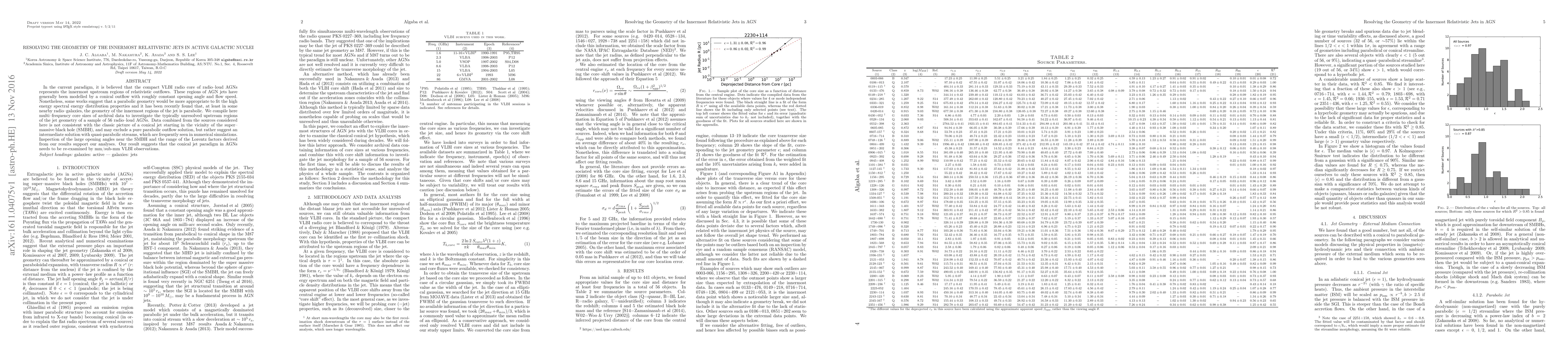 This study investigates the geometry of the innermost regions of relativistic jets in active galactic nuclei (AGNs) using multi-frequency core sizes from archival data. The findings suggest that the classic conical jet model may not be sufficient, proposing instead quasi-parabolic streams as a more accurate representation.