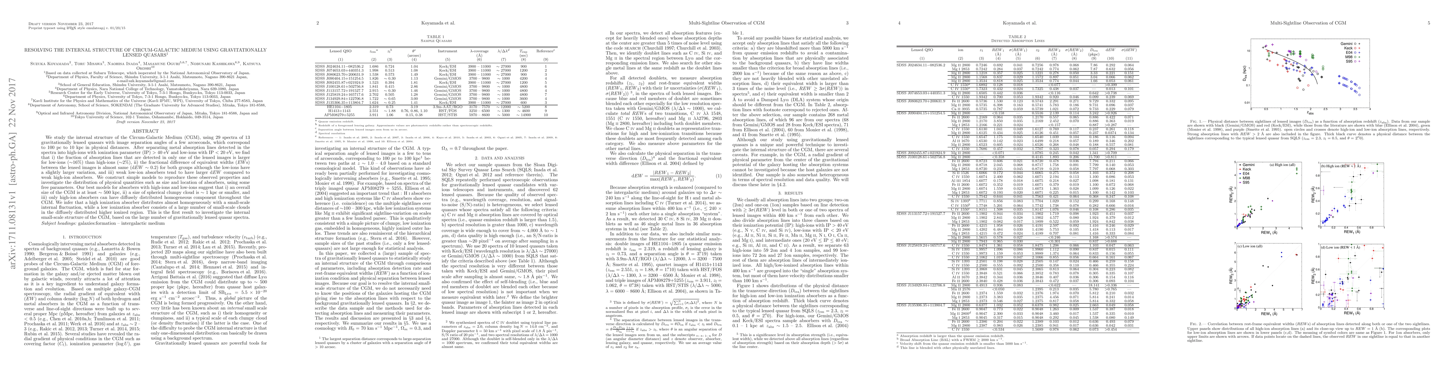 The paper presents a novel approach to study the internal structure of the CGM by analyzing gravitationally lensed quasar spectra, separating absorption lines into high-ion and low-ion components, and constructing simple models with five parameters to reproduce observed results.