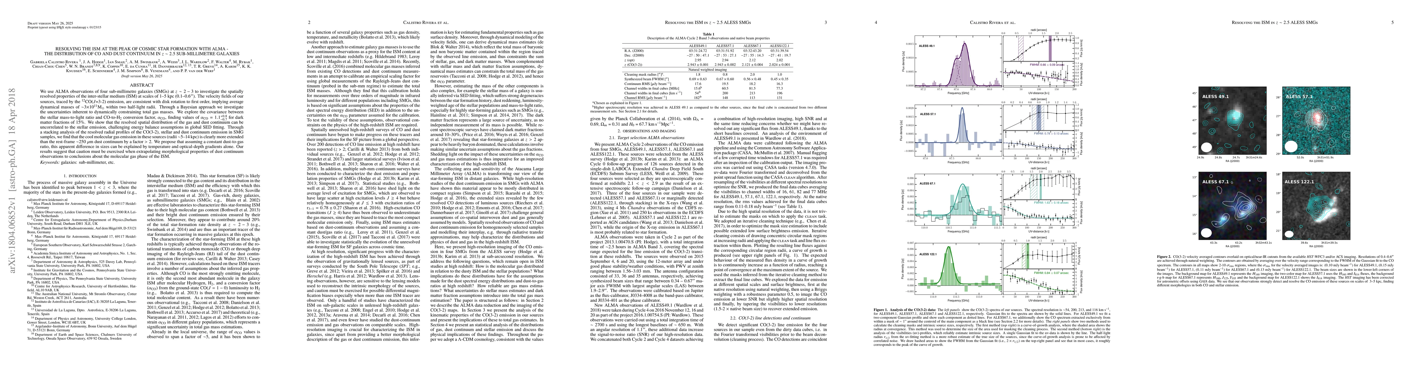 We use ALMA observations of four sub-millimetre galaxies (SMGs) at $z\sim2-3$ to investigate the spatially resolved properties of the inter-stellar medium (ISM) at scales of 1--5 kpc (0.1--0.6$''$). The velocity fields of our sources, traced by the $^{12}$CO($J$=3-2) emission, are consistent with disk rotation to first order, implying average dynamical masses of $\sim$3$\times10^{11}$M$_{\odot}$ within two half-light radii. Through a Bayesian approach we investigate the uncertainties inherent to dynamically constraining total gas masses. We explore the covariance between the stellar mass-to-light ratio and CO-to-H$_{2}$ conversion factor, $\alpha_{\rm CO}$, finding values of $\alpha_{\rm CO}=1.1^{+0.8}_{-0.7}$ for dark matter fractions of 15 \%. We show that the resolved spatial distribution of the gas and dust continuum can be uncorrelated to the stellar emission, challenging energy balance assumptions in global SED fitting. Through a stacking analysis of the resolved radial profiles of the CO(3-2), stellar and dust continuum emission in SMG samples, we find that the cool molecular gas emission in these sources (radii $\sim$5--14 kpc) is clearly more extended than the rest-frame $\sim$250 $\mu$m dust continuum by a factor $>2$. We propose that assuming a constant dust-to-gas ratio, this apparent difference in sizes can be explained by temperature and optical-depth gradients alone. Our results suggest that caution must be exercised when extrapolating morphological properties of dust continuum observations to conclusions about the molecular gas phase of the ISM.