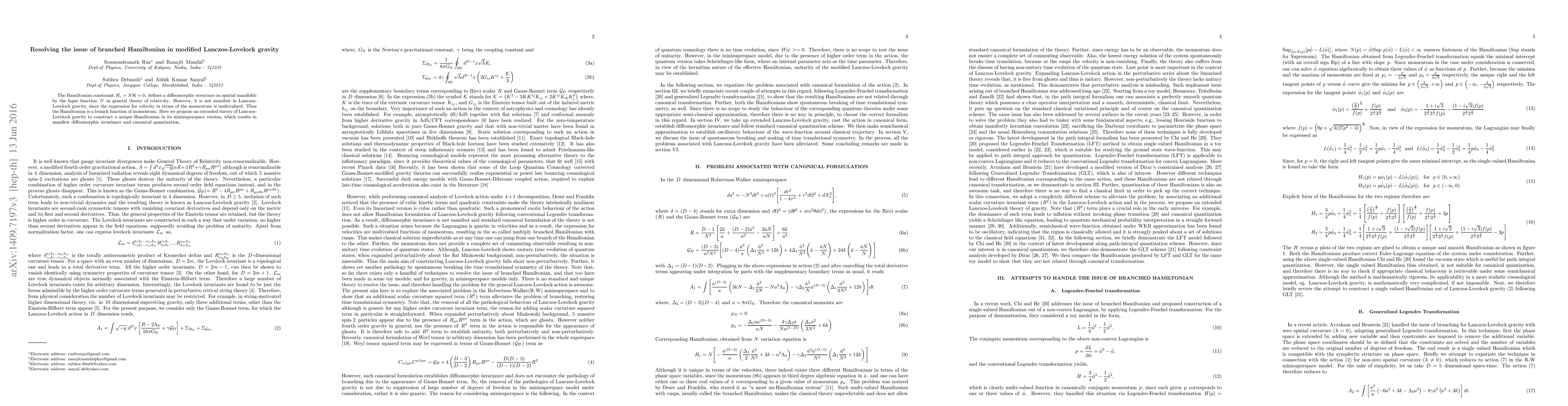 The Hamiltonian constraint Hc = NH = 0, defines a diffeomorphic structure on spatial manifolds by the lapse function N in general theory of relativity. However, it is not manifest in Lanczos-Lovelock gravity, since the expression for velocity in terms of the momentum is multivalued. Thus the Hamiltonian is a branch function of momentum. Here we propose an extended theory of Lanczos-Lovelock gravity to construct a unique Hamiltonian in its minisuperspace version, which results in manifest diffeomorphic invariance and canonical quantization.