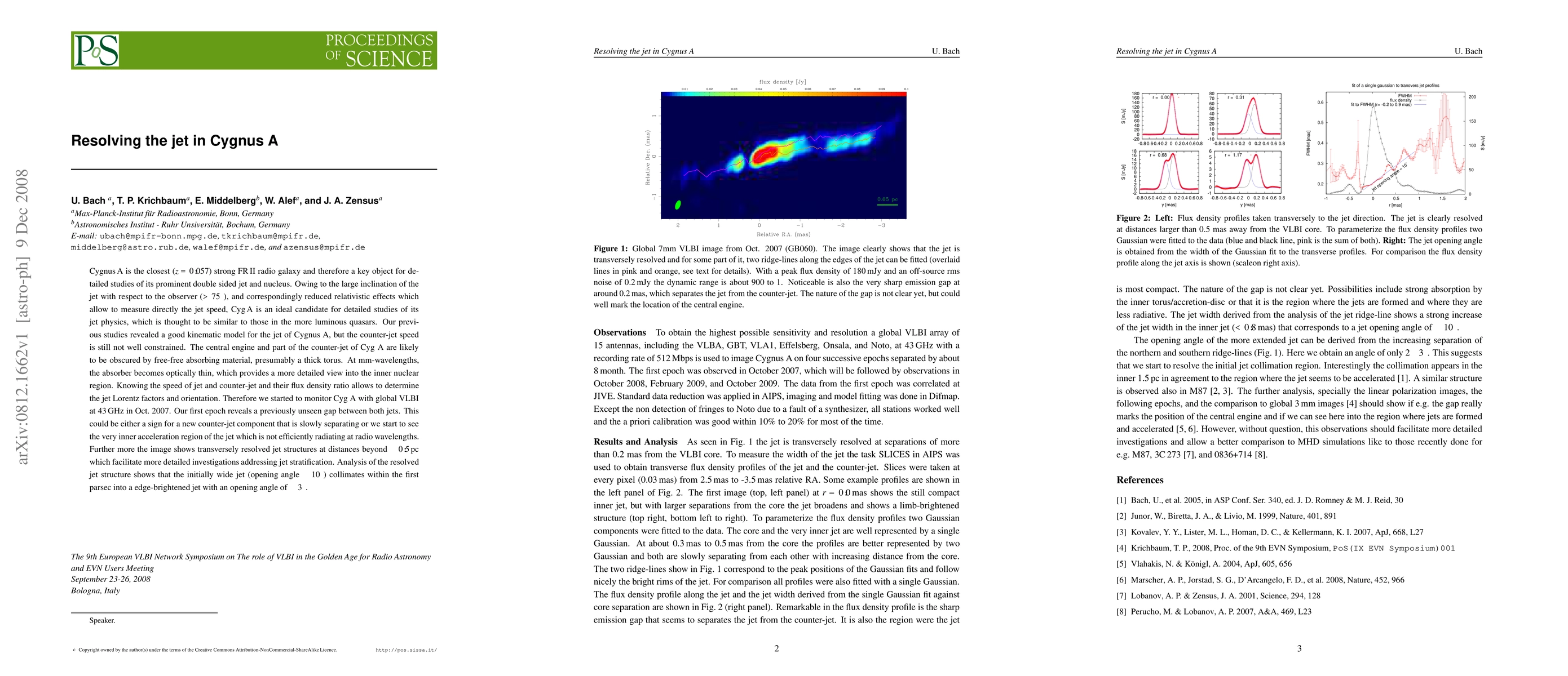 This paper reports on new VLBI observations of Cygnus A's jets, revealing a previously unseen gap between them and transversely resolved jet structures beyond 0.5pc, suggesting a collimation within the first parsec. The findings aim to better constrain the jet and counter-jet speeds and their flux density ratio to determine the jet's Lorentz factors and orientation.