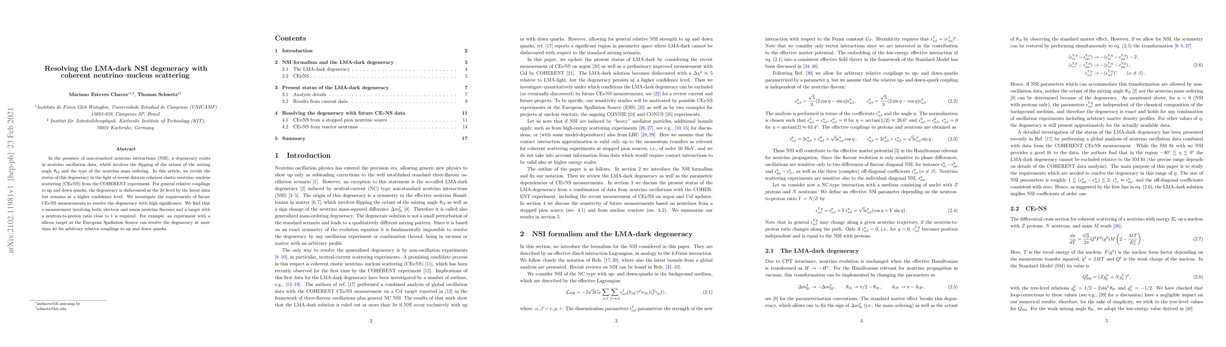 Recent data on coherent neutrino-nucleus scattering suggests that a degeneracy in neutrino oscillation data can be resolved with high significance through future experiments, particularly those involving electron and muon neutrinos and certain target materials.