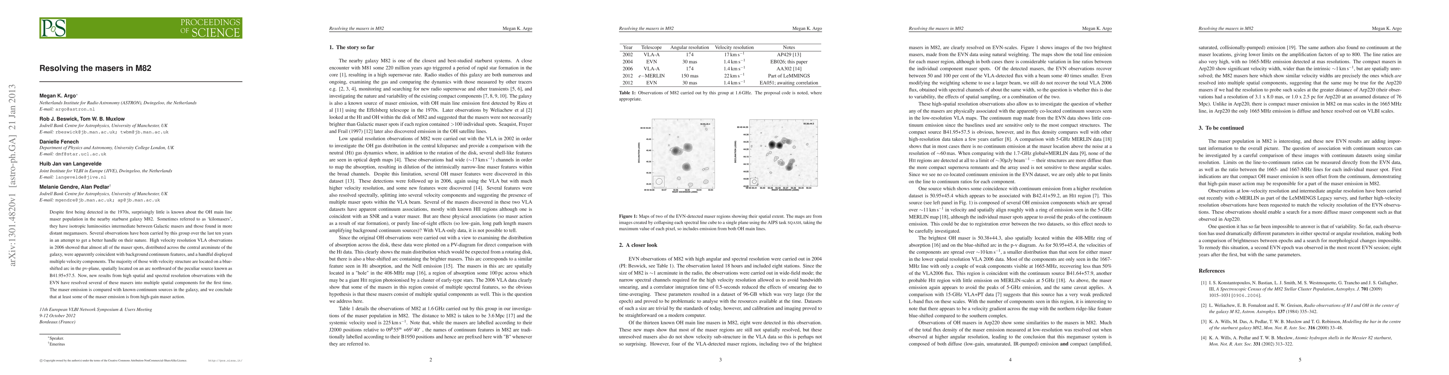 Researchers have used high-resolution observations to resolve maser spots in the starburst galaxy M82 into multiple spatial components for the first time, suggesting that at least some of the maser emission is from high-gain maser action.
