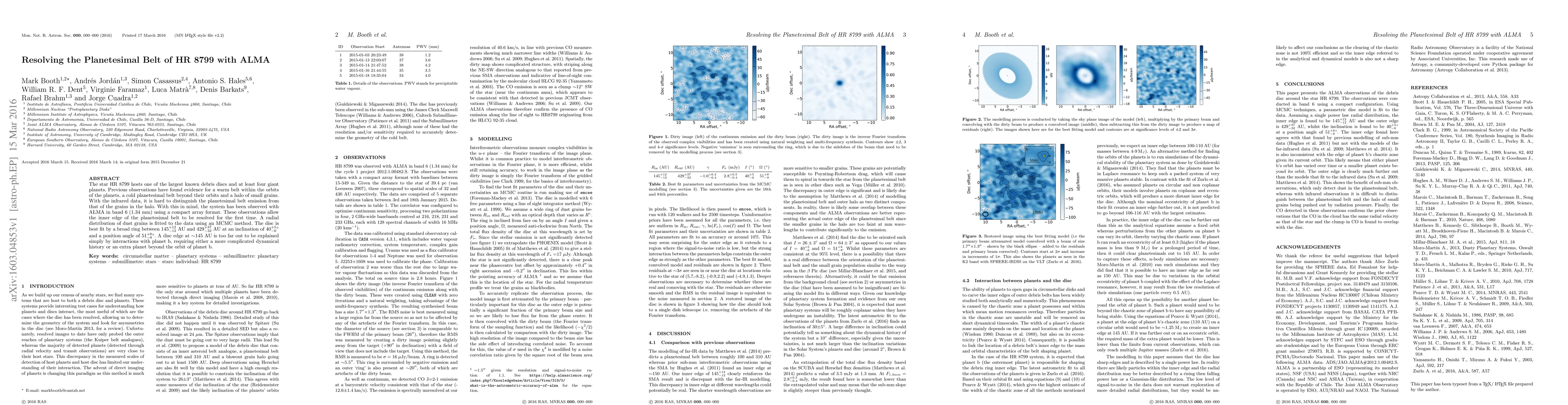 The star HR 8799 hosts one of the largest known debris discs and at least four giant planets. Previous observations have found evidence for a warm belt within the orbits of the planets, a cold planetesimal belt beyond their orbits and a halo of small grains. With the infrared data, it is hard to distinguish the planetesimal belt emission from that of the grains in the halo. With this in mind, the system has been observed with ALMA in band 6 (1.34 mm) using a compact array format. These observations allow the inner edge of the planetesimal belt to be resolved for the first time. A radial distribution of dust grains is fitted to the data using an MCMC method. The disc is best fit by a broad ring between $145^{+12}_{-12}$ AU and $429^{+37}_{-32}$ AU at an inclination of $40^{+5}_{-6}${\deg} and a position angle of $51^{+8}_{-8}${\deg}. A disc edge at ~145 AU is too far out to be explained simply by interactions with planet b, requiring either a more complicated dynamical history or an extra planet beyond the orbit of planet b.