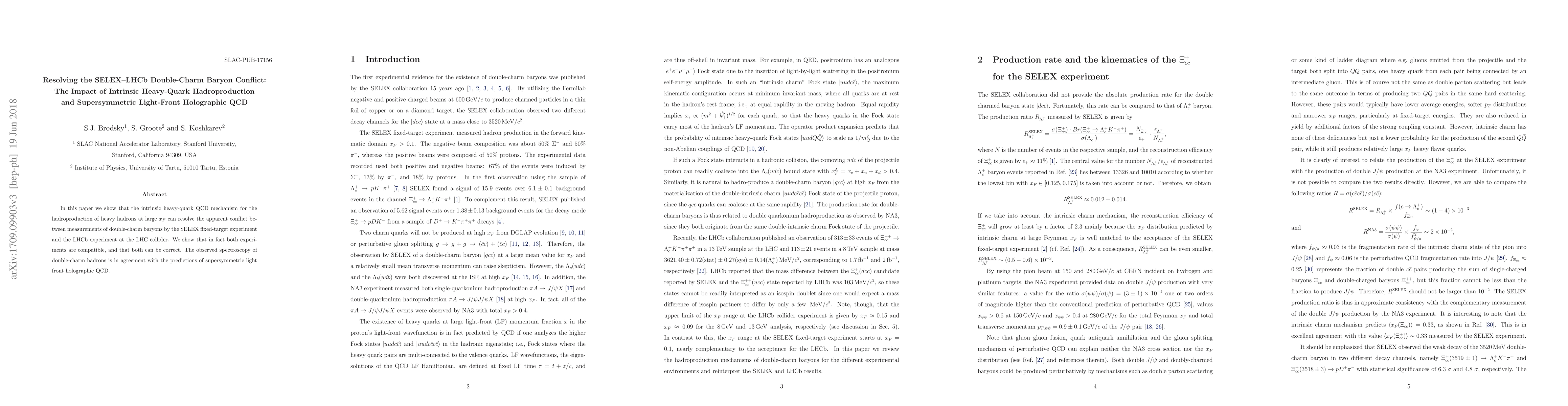 This paper resolves the discrepancy between SELEX and LHCb measurements of double-charm baryons by proposing an intrinsic heavy-quark QCD mechanism for their production. It demonstrates that both experiments are consistent and that the observed spectroscopy aligns with supersymmetric light-front holographic QCD predictions.