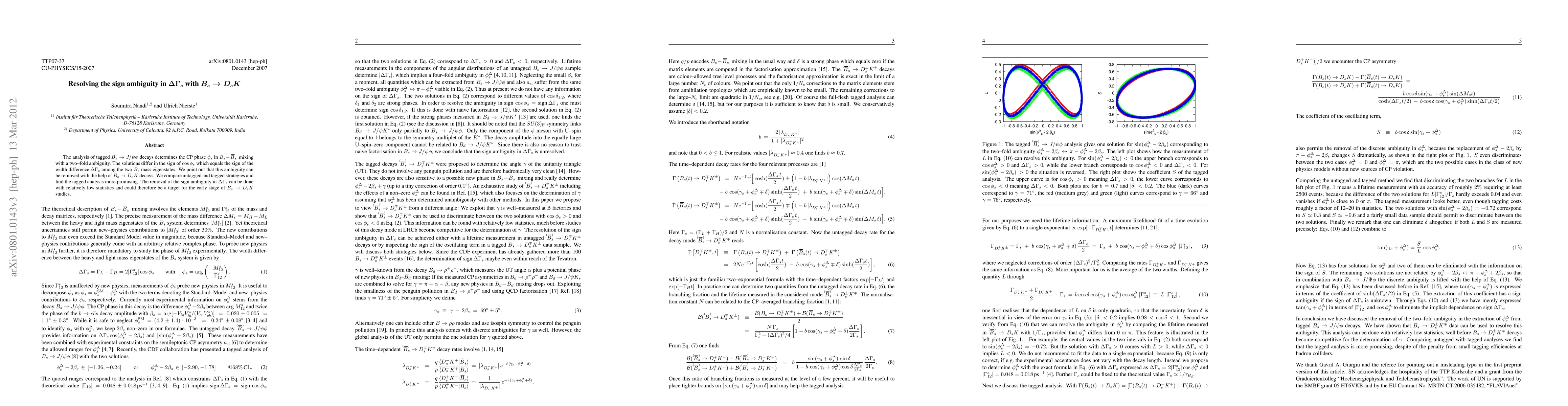 This paper discusses the resolution of the sign ambiguity in the CP phase phi_s from B_s meson decays, which is tied to the width difference Delta Gamma_s. It proposes that B_s -> D_s K decays can help remove this ambiguity, with tagged analysis strategies showing more promise than untagged ones.