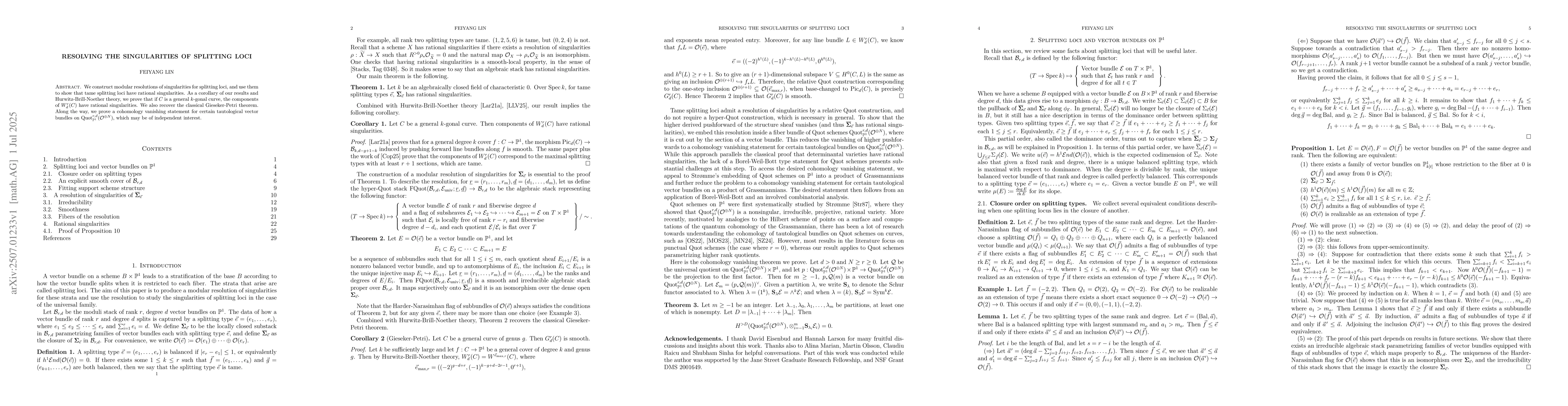 We construct modular resolutions of singularities for splitting loci, and use them to show that tame splitting loci have rational singularities. As a corollary of our results and Hurwitz-Brill-Noether theory, we prove that if $C$ is a general $k$-gonal curve, the components of $W^r_d(C)$ have rational singularities. We also recover the classical Gieseker-Petri theorem. Along the way, we prove a cohomology vanishing statement for certain tautological vector bundles on $\operatorname{Quot}^{r,d}_{\mathbb{P}^1}(\mathcal{O}^{\oplus N})$, which may be of independent interest.