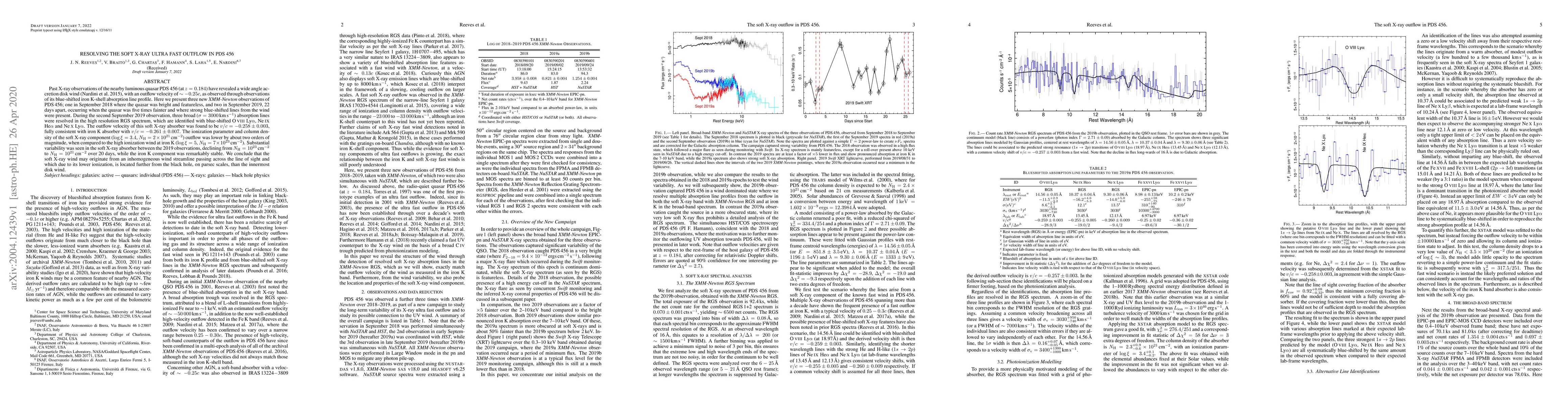 This study uses XMM-Newton observations to resolve three broad absorption lines in the soft X-ray spectrum of PDS 456, identifying them as blue-shifted OVIII, NeIX, and NeX lines. The outflow velocity is consistent with previous iron K observations, suggesting a common origin, but with lower ionization and column density, indicating it is located further from the black hole.