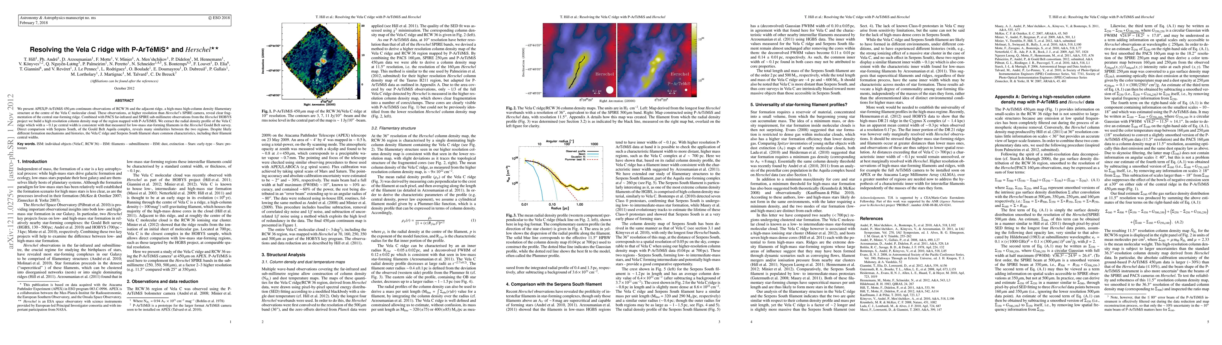This study uses APEX/P-ArT\'eMiS to observe the Vela C ridge, revealing its high-resolution fragmentation and building a detailed column density map. Comparisons with Herschel data show similarities between Vela C ridge and the Serpens South filament, despite different formation histories.